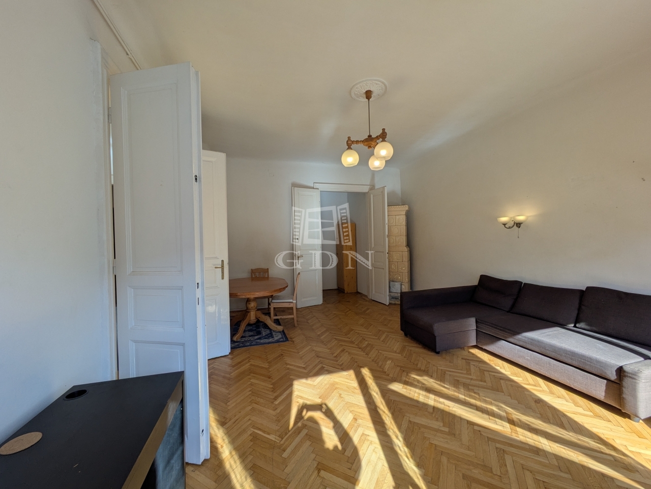 → Antik cserépkályha dekorációként, eredeti parketta