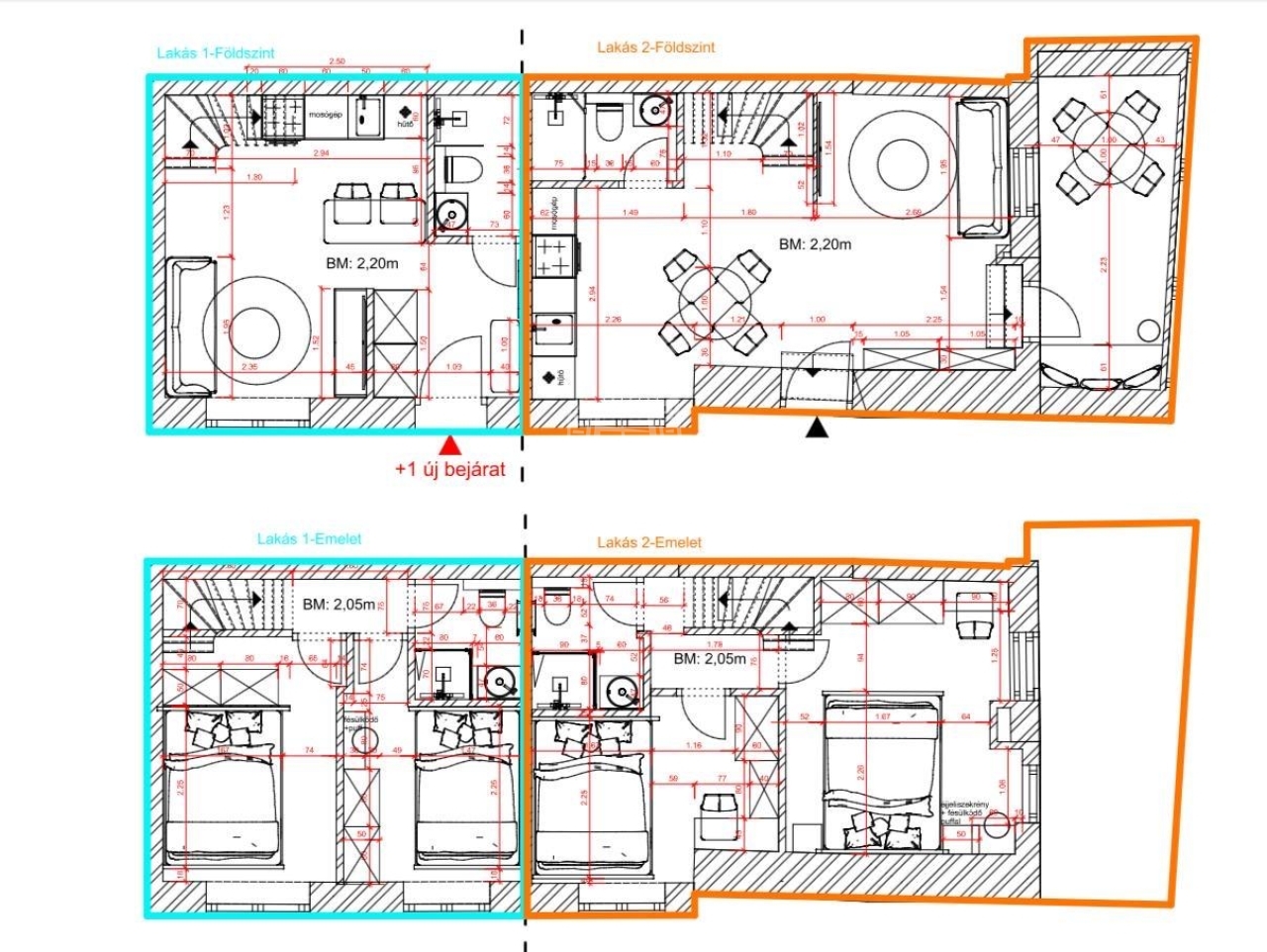 Emelet: 2 külön hálószoba + további fürdő és WC