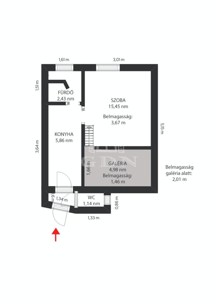 • Alapterület: 26 m² + galéria