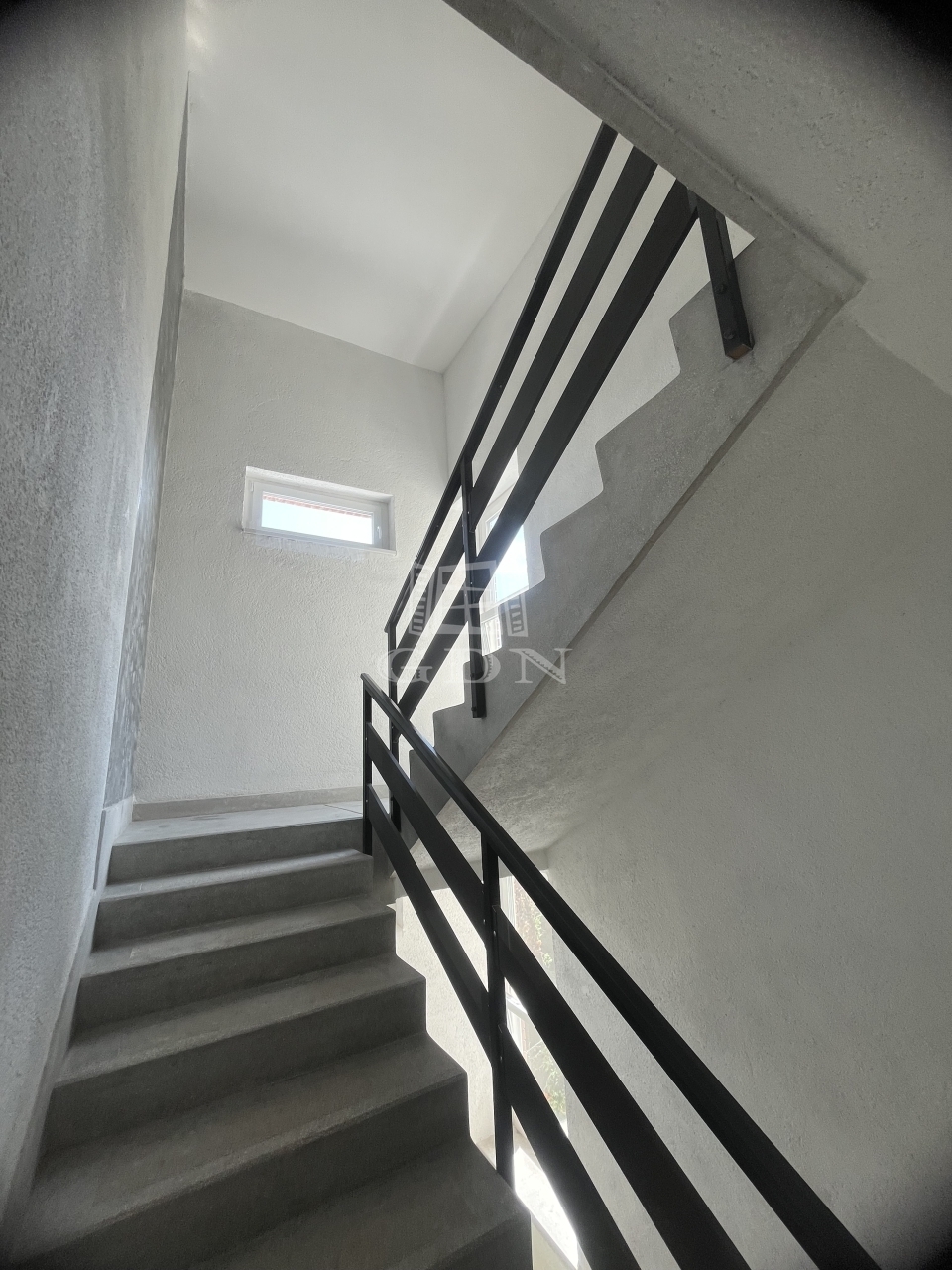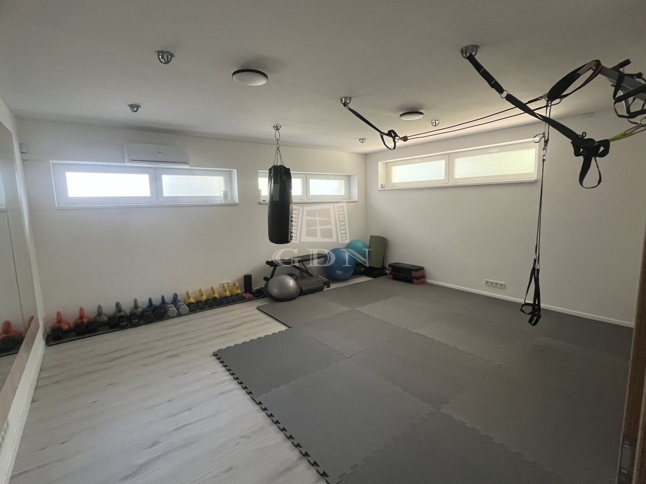 Az alsó három szinten mindegyik lakás 96 nm, iroda és kiszolgáló helyiségek találhatók itt, de garázs is kialakítható az alsó szinten, ahol jelenleg edzőterem van.