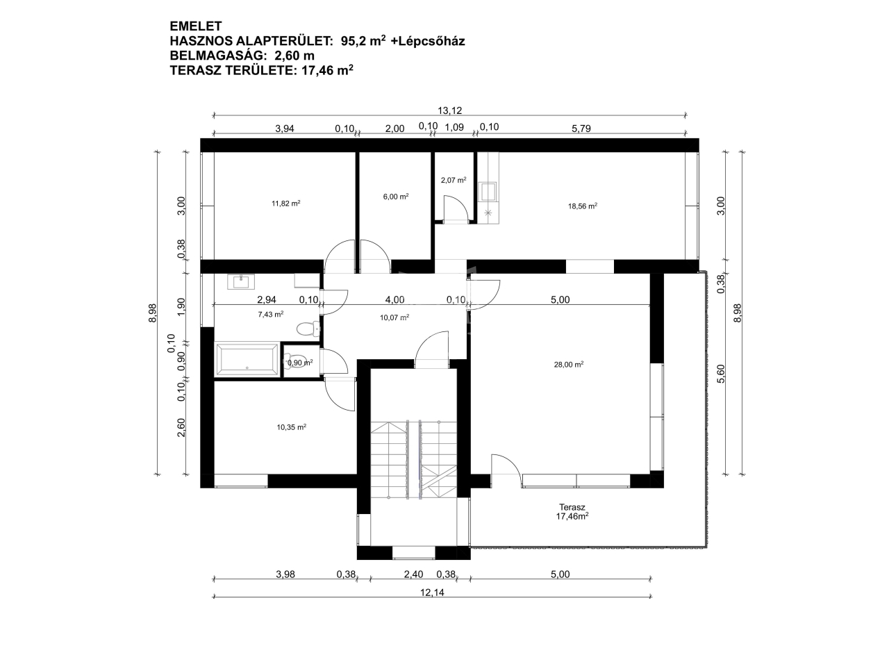 A tetőtér 70 nm, így az összes hasznos alapterület 358 nm.