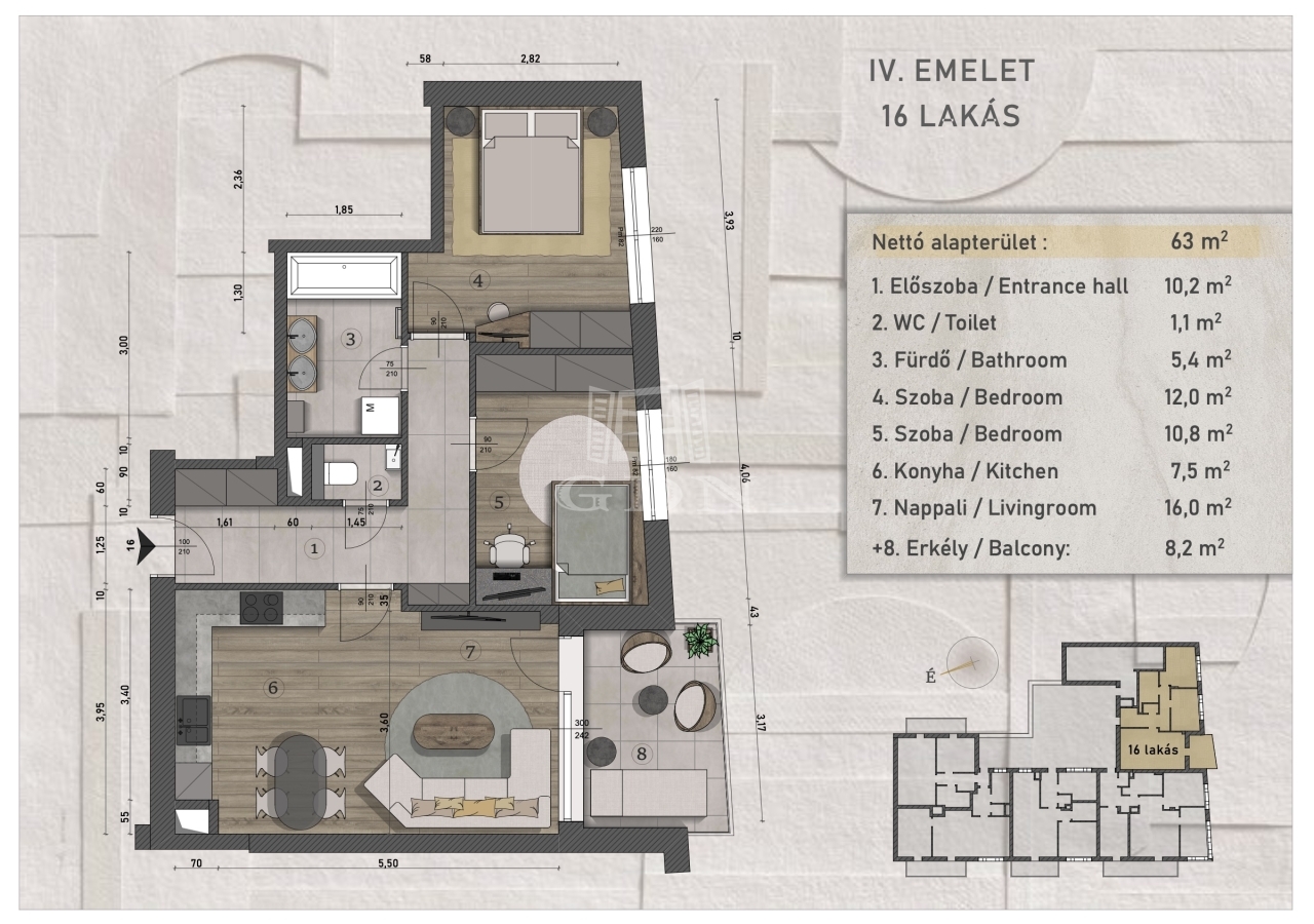 | 63 m2Alapterület | 3 Szoba |