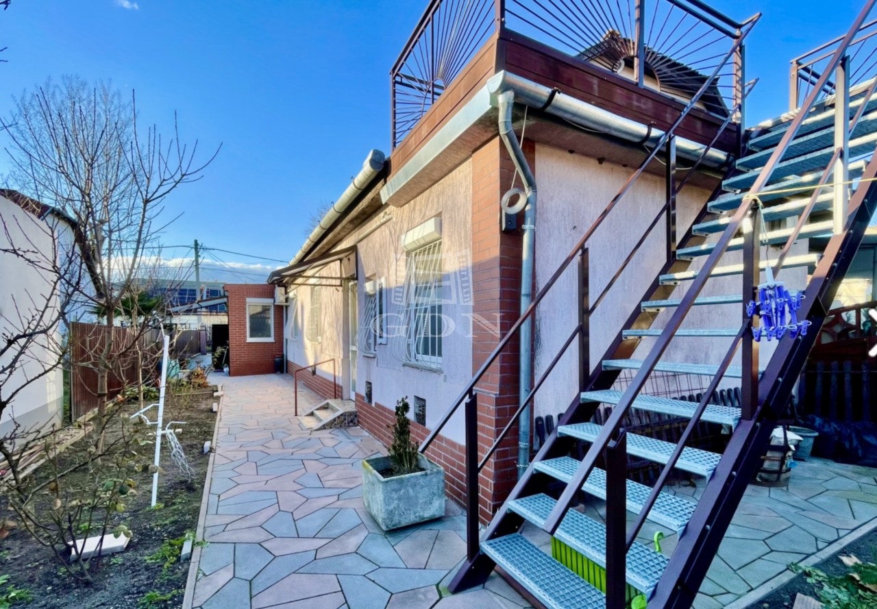 XIV. kerületben, Alsórákos családi házas övezetében eladó egy 354 m2-es telken elhelyezkedő bruttó 154, nettó 113 m2-es, 1960-as években épült két generációs, CSENDES, VILÁGOS tégla építésű ikerház-fél, mely saját részre és befektetésre is kiválóan alkalmas. A ház jelenleg két részre van osztva, melyből: