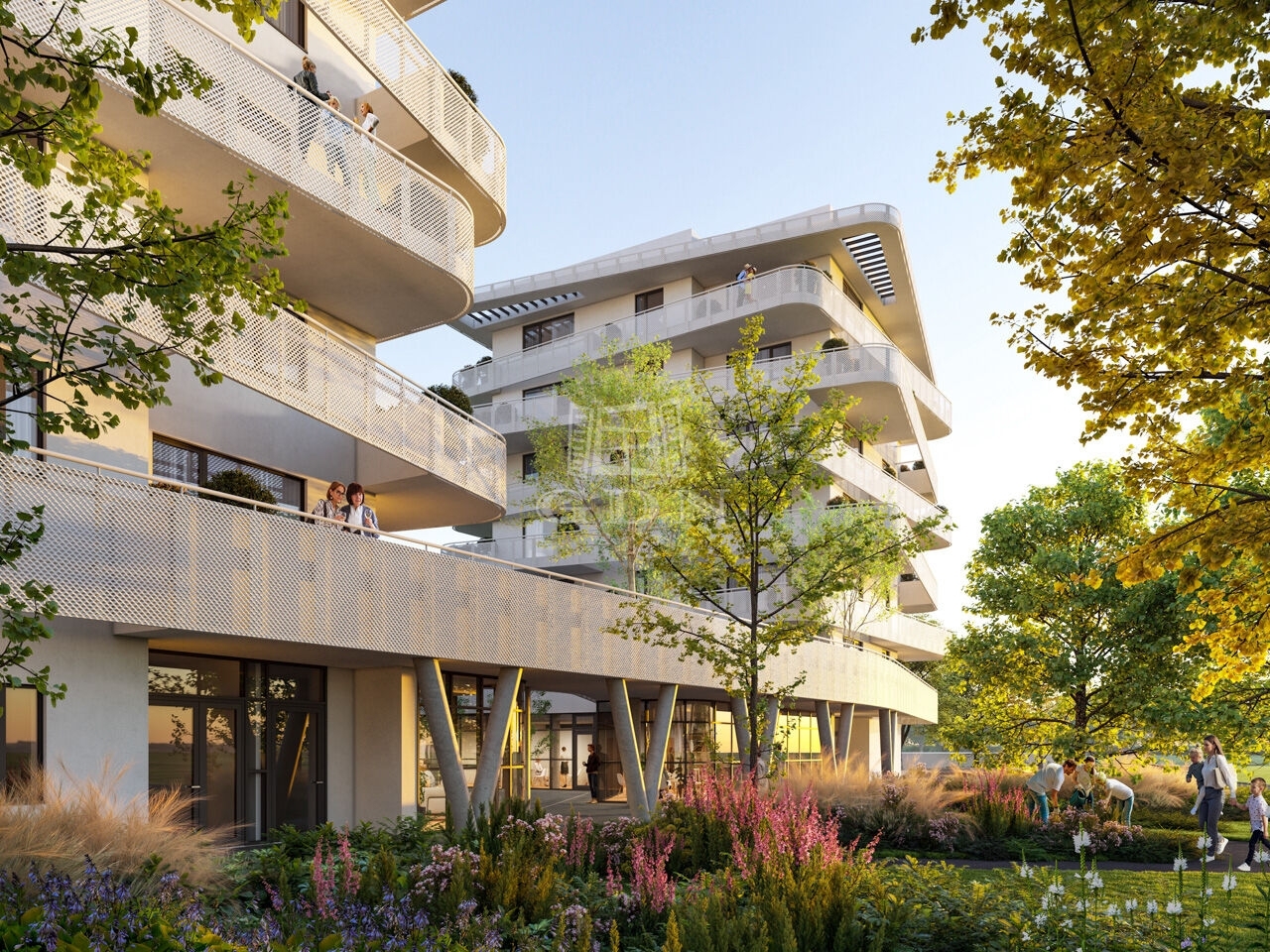 A két épületből álló beruházás során összesen 140 lakás épül, melyek izgalmas vonalvezetésű erkélyei segítik a többlakásos épület harmonikus illeszkedését a ligetes park és a megújult Rákos-patak által létrejövő környezetbe.