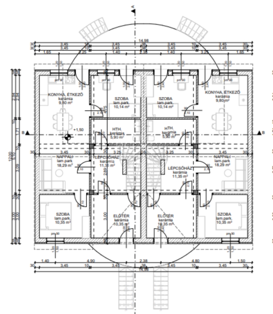 A földszint (80m2)és az emelet nettó (60m2)alapterülete összesen 140 m², amelyhez egy 90 m²-es pince szint is tartozik. A ház duplakomfortos, minden szinten padlófűtéssel felszerelt.