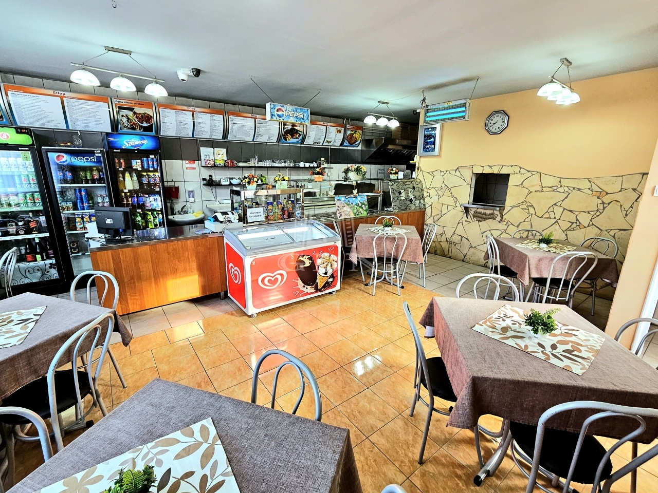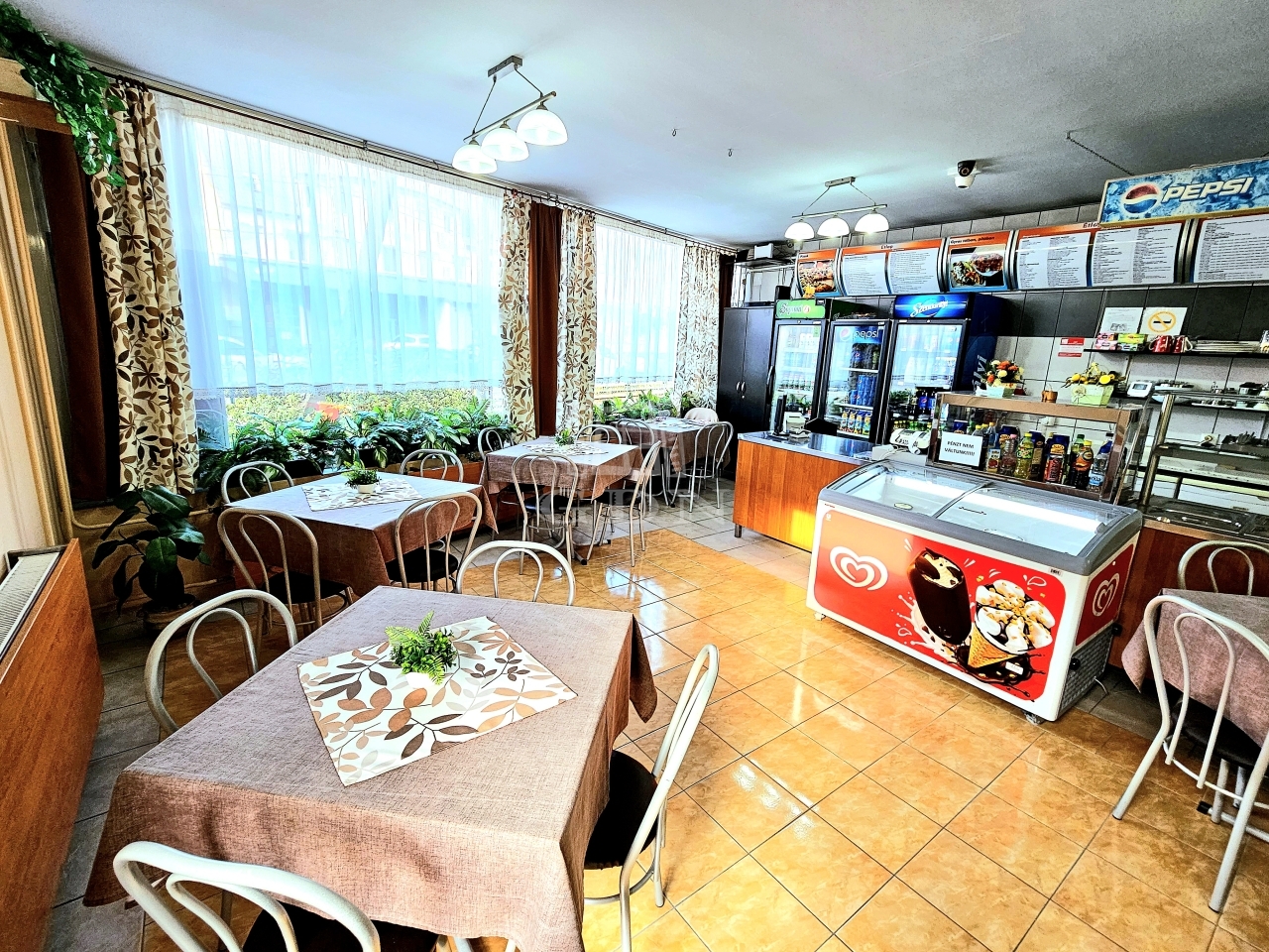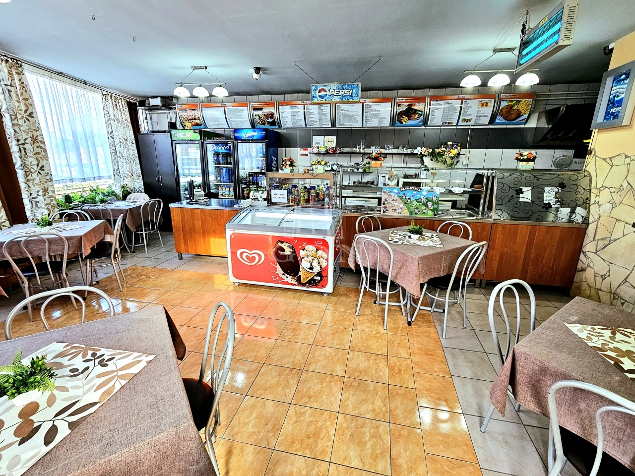 Mind ételkiszállításra, mind helyben fogyasztásra is van lehetőség + nyáron terasz is csábíthatja a leendő vendégeket.