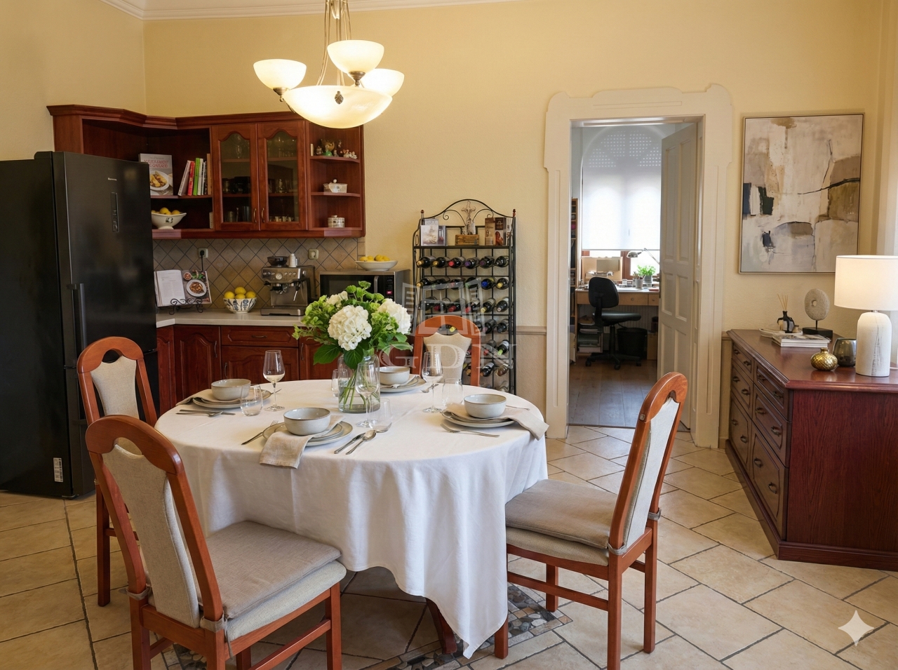 Eladásra kínálunk Cegléden, a vasútállomás közelében, egy kifejezetten csendes, kertvárosi övezetben elhelyezkedő, kúria jellegű, nagypolgári családi házat. Az ingatlan az 1950-es évek eleganciáját ötvözi a legmodernebb energetikai és műszaki megoldásaival.