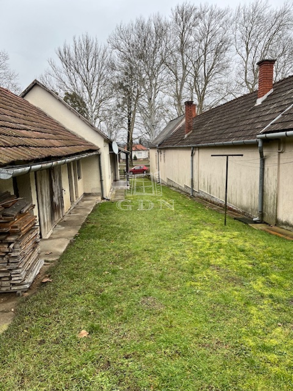 Az ingatlan egy 909 m²-es, sík telken helyezkedik el, rendezett, nyugodt környezetben, a falu egyik mellékutcájában található, távol a forgalmas utcák zajától.