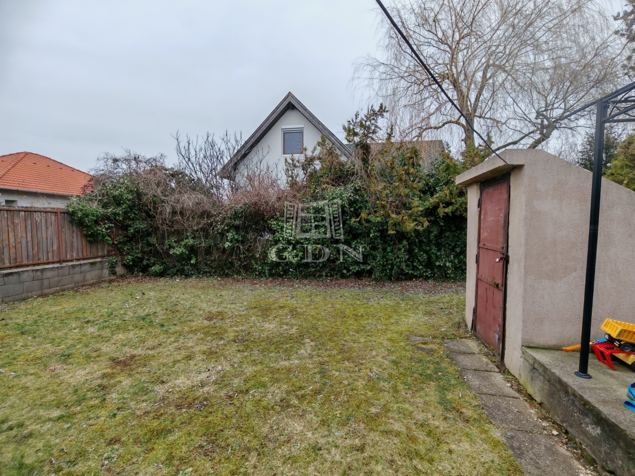 A ház egy 713 m²-es, rendezett, sík telken helyezkedik el, garázzsal és kb. 10 m²-es földes pincével.