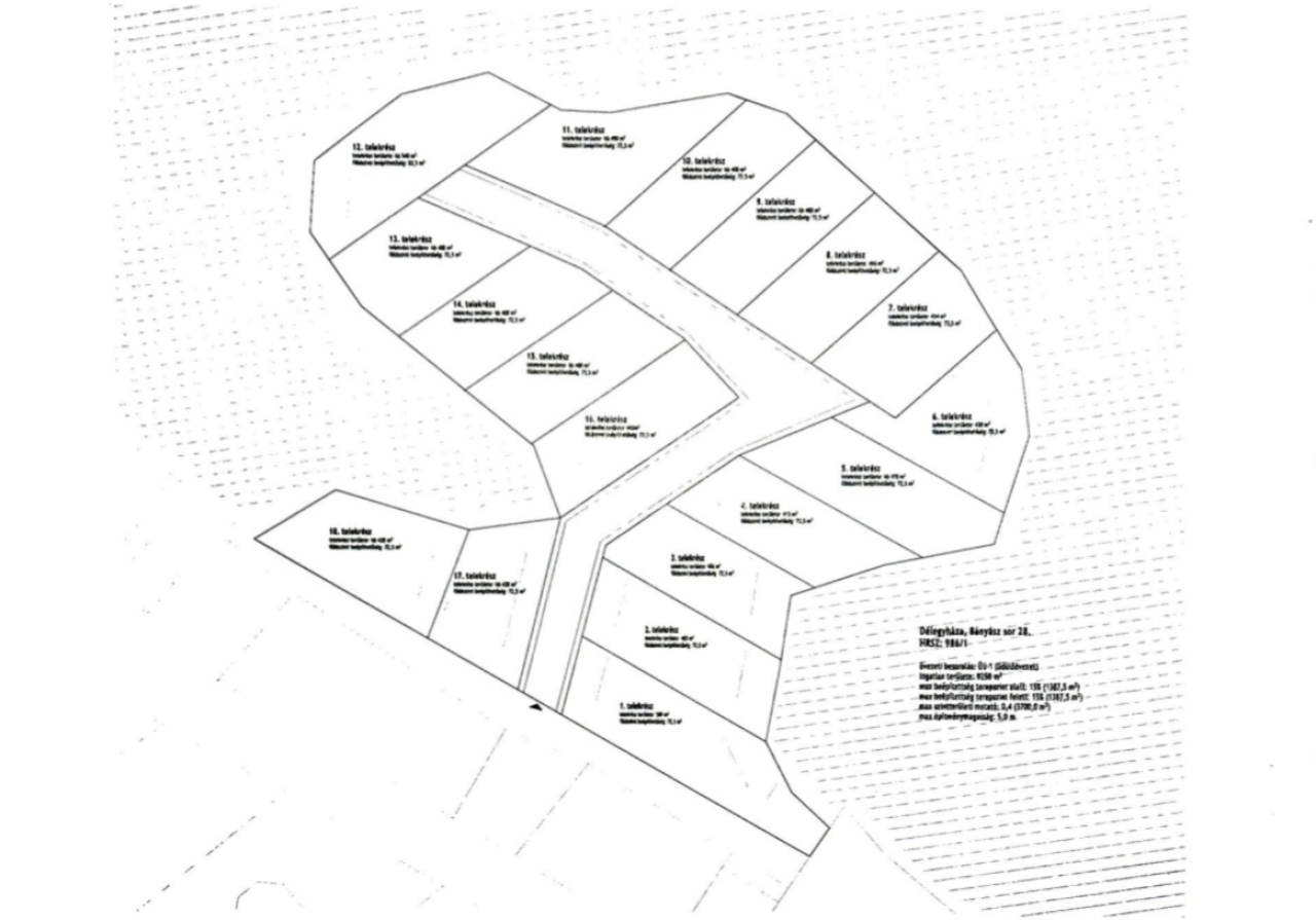 Többféle geodétai felosztási terv már rendelkezésre áll, megtekintés után bemutatjuk. Bár ezek még az üdülő övezeti beépítéssel lettek tervezve azóta természetesen még jobb lehetőségek vannak.