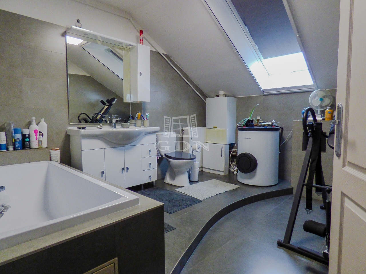 Dunakeszin, Alag város részen, kertvárosi környezetben, 480 nm-es sarok telken lévő, 2002-ben és 2007-ben épült, teljeskörűen felújított (új tető), vasbeton födémes (a kis lakrész fafödémes), két szintes, szigetelt (8 cm dryvit), bruttó 200 nm-es, 6+1 fél szobás, Keleti fekvésű, 2 GENERÁCIÓS (külön albetétes), gáz cirkó fűtéses (radiátoros hőleadással), központi klímás, műanyag thermo nyílászárós (redőnnyel, rovarhálóval), vízlágyítóval, riasztóval, kamerával felszerelt, rugalmasan birtokba vehető, családi ház eladó.
