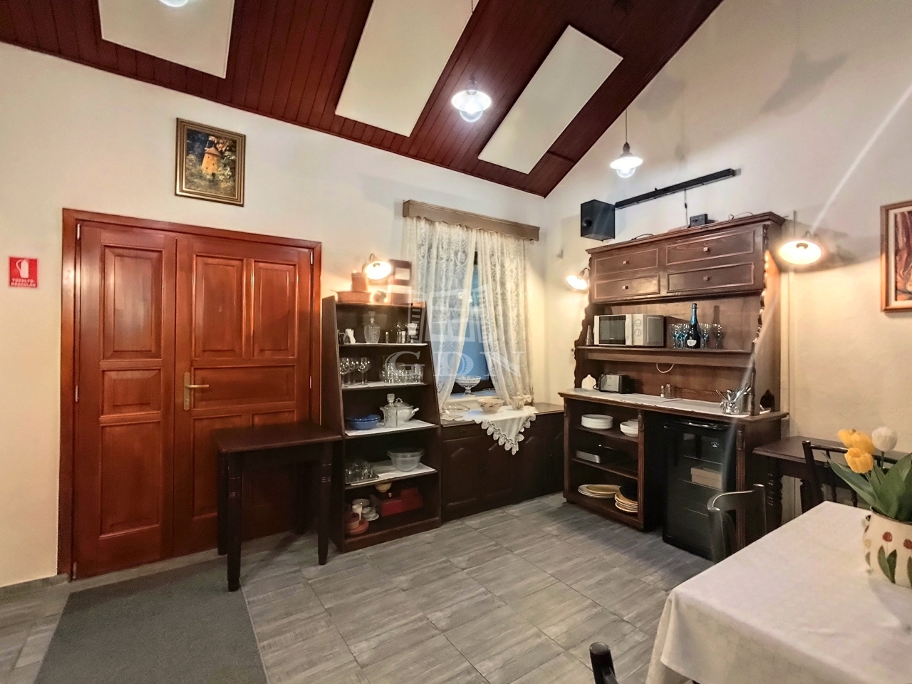 Az impozáns ingatlan tágas fogadótérrel rendelkezik, jelenleg nappali-étkezőként funkcionál ez a hatalmas tér, mely az otthon lelke is egyben. Emellett egy jól felszerelt konyha segíti a mindennapokat.