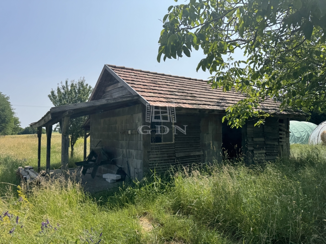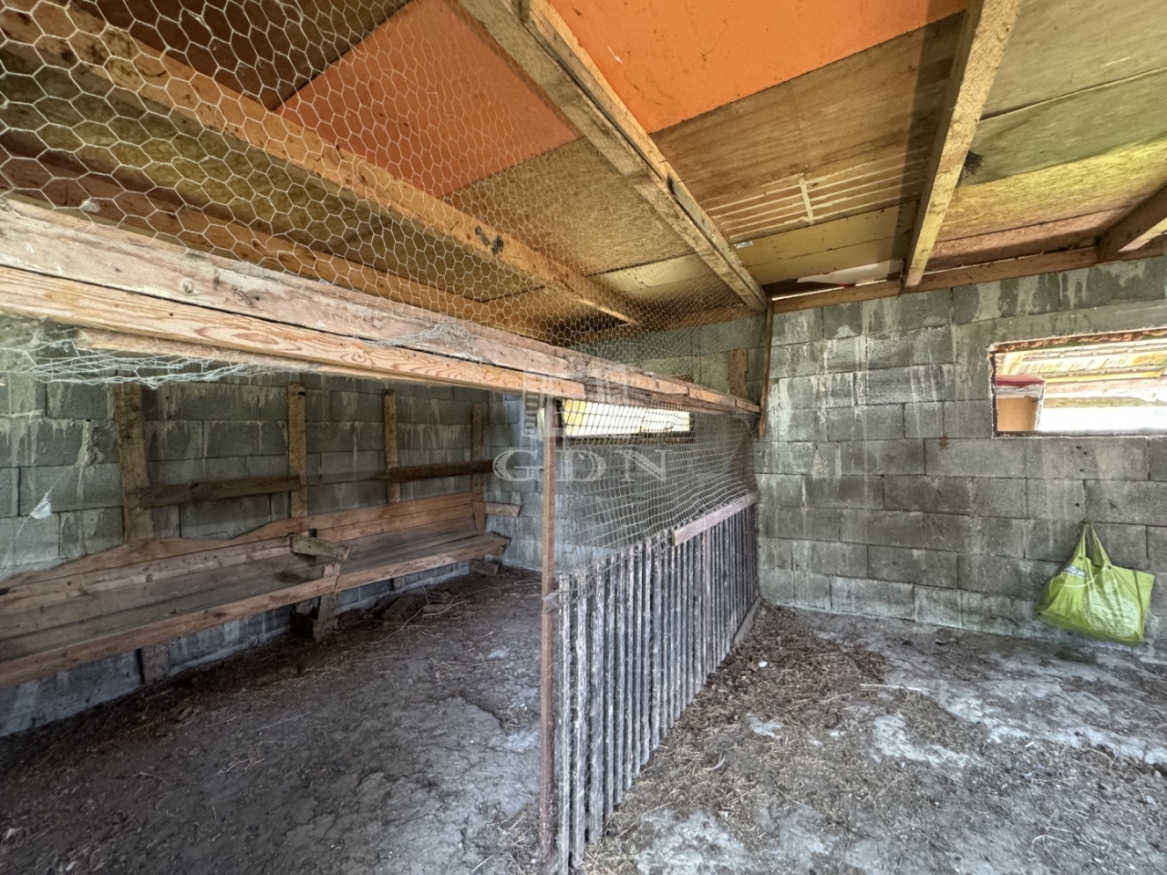 Az utca felőli részen egy vegyesfalazatú, felújítást és korszerűsítést igénylő, hozzávetőlegesen 40m2-es ház található, melyben egy konyha, szoba és fürdőszoba került kialakításra.