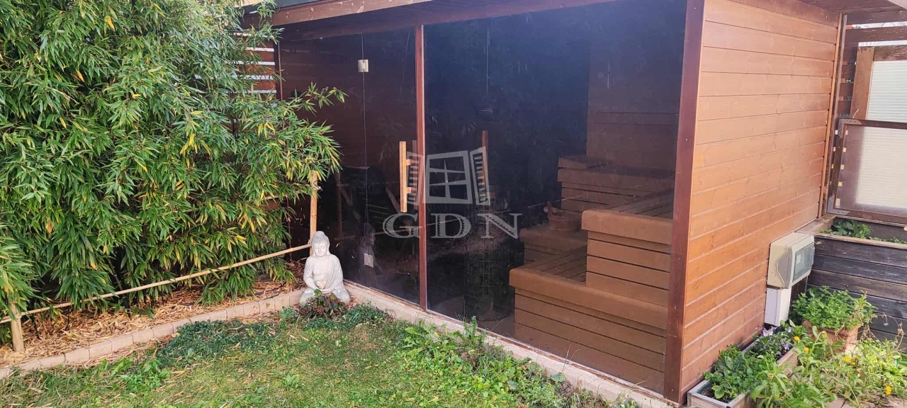 A lakás kiváló elosztással rendelkezik, meleg, déli tájolású nagy ablakokkal, fedett terasszal. Az öntözőrendszerrel kialakított kertben fatüzelésű erdélyi fürdődézsával és egy prémium kivitelezésű 6 személyes finn szaunával, a nyári madárcsicsergés mellett még a téli hétköznap esték is meghitt nyugalomban és teljes feltölődésben telnek.