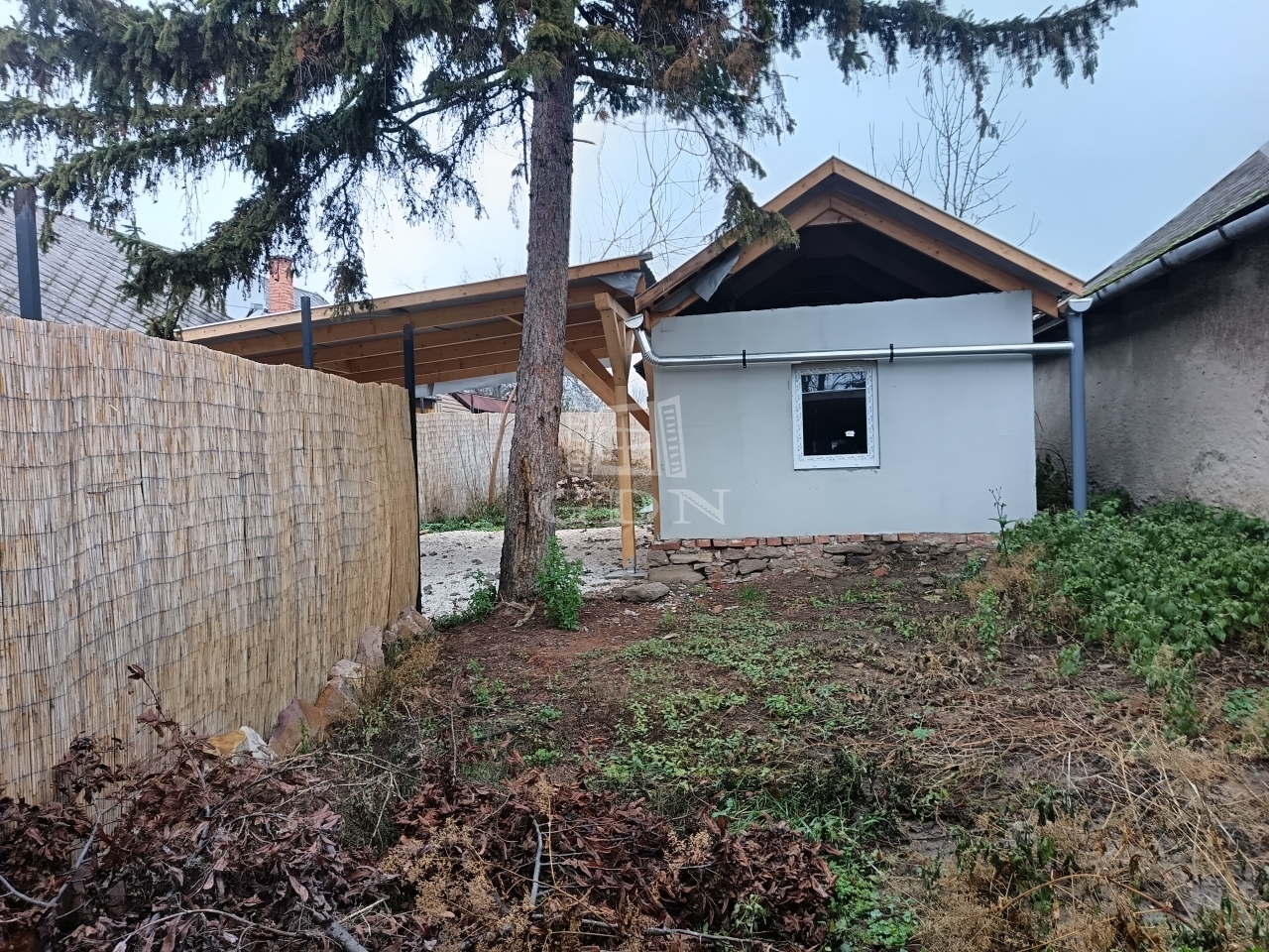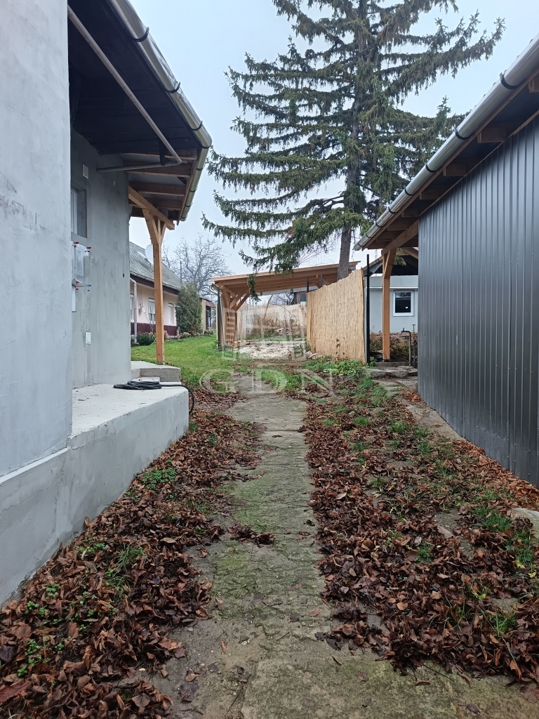 Az udvar osztott, közös tulajdon, vázrajzon feltüntetve, a hazsnálati megosztás. Ez a ház az udvarban az első, utcafronti épület, melyhez 1 db 40 nm nagyságú, fedett garázs is tartoziuk, ezen kívül egy pince is.
