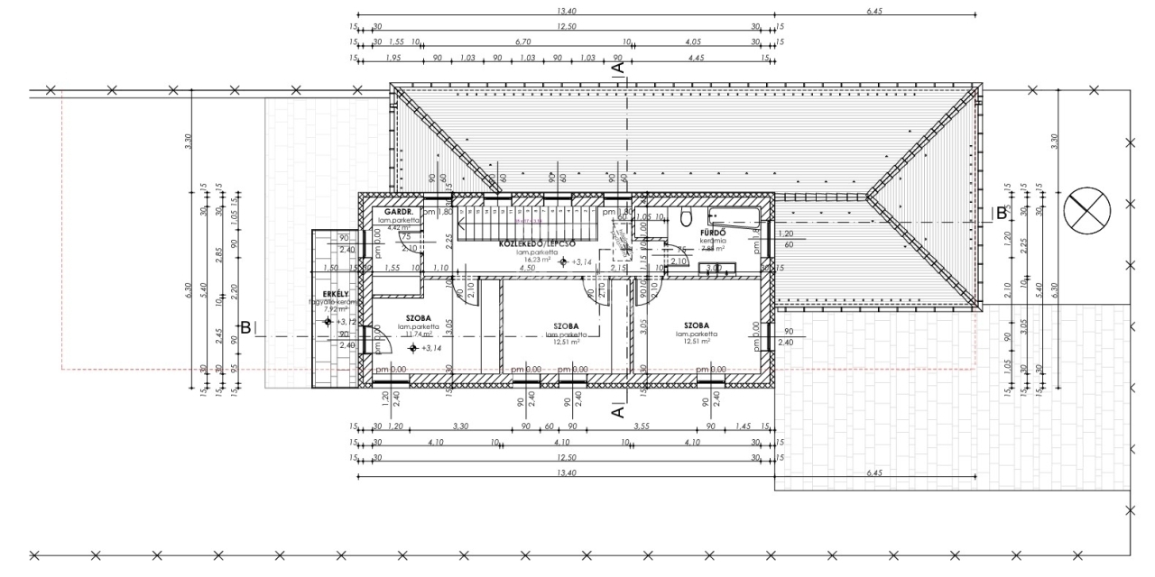 Emelet nettó alapterület: 65,24 m²+8 nm terasz.
