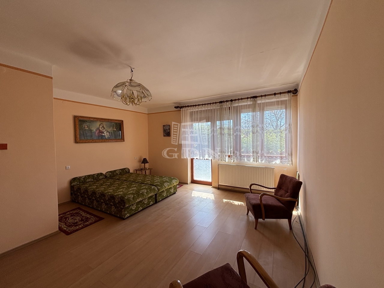 A földszinti ingatlan 97 négyzetméteres, három megfelelő méretű szobával rendelkezik.