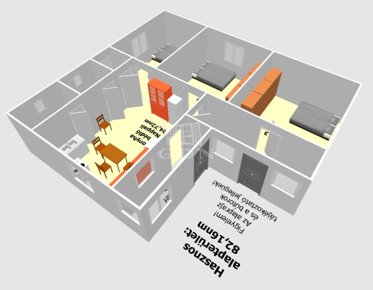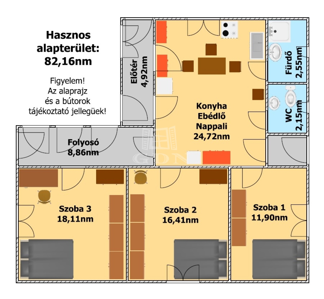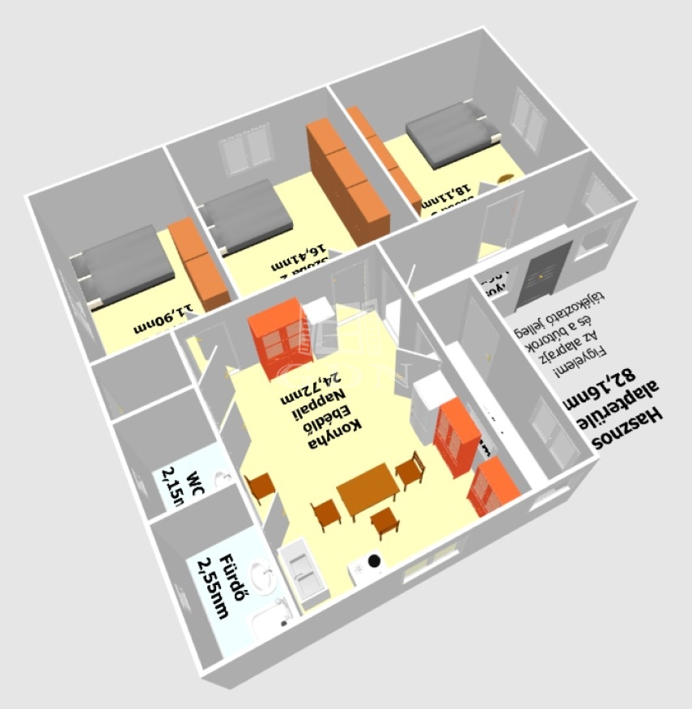 82 m2Alapterület 3 Szoba
