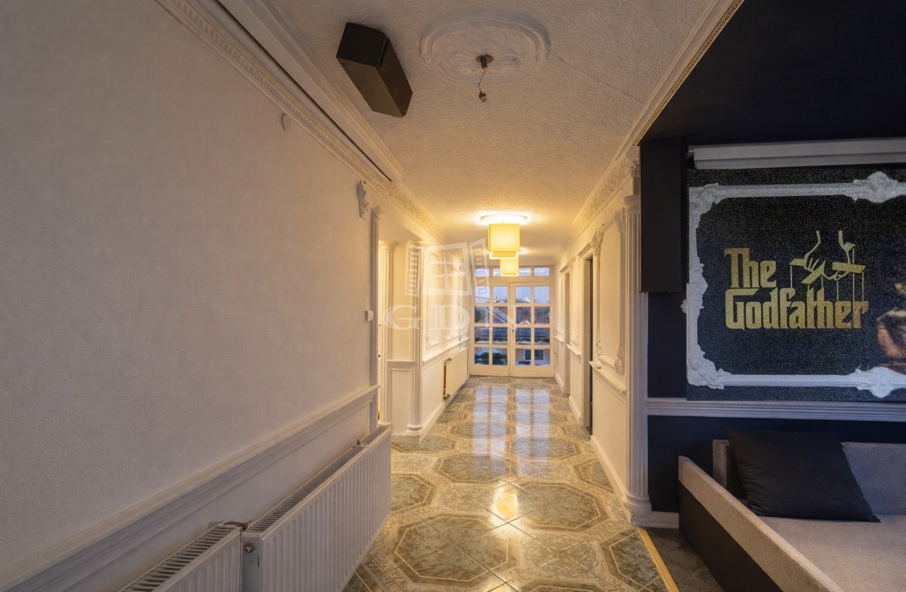 Az ingatlan belső és külső tereit eredeti, kézzel kidolgozott gipszstukkók, klasszikus oszlopos megoldások és íves nyílászárók teszik különlegessé, amely valódi villa megjelenést biztosít.