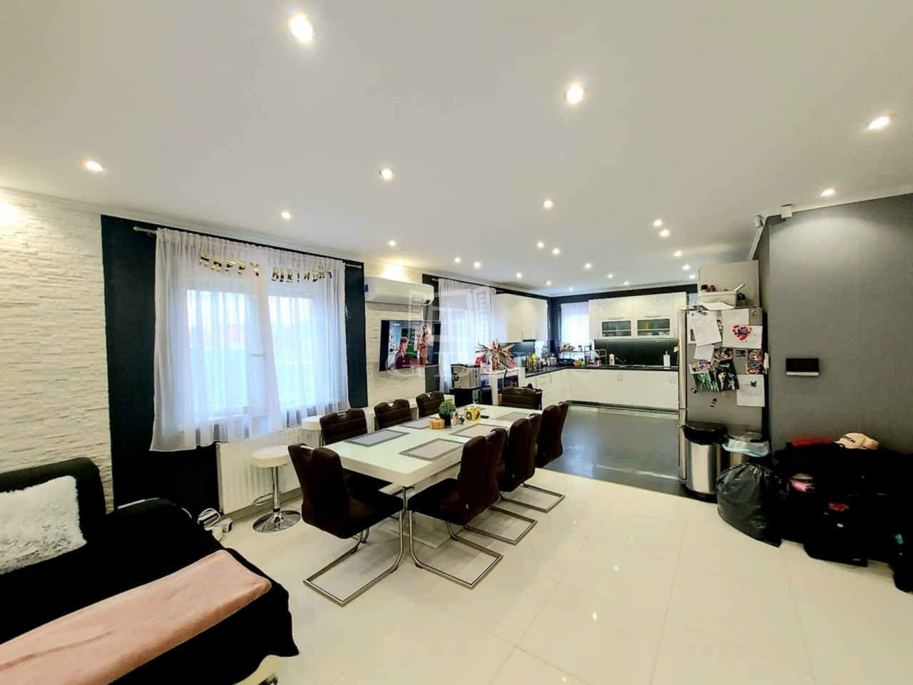 A lakható terület 148 nm, tágas amerikai konyhás nappali+ három háló, két fürdőszoba kádas-valamint zuhanyzós, kazánház, előtér-közlekedővel.