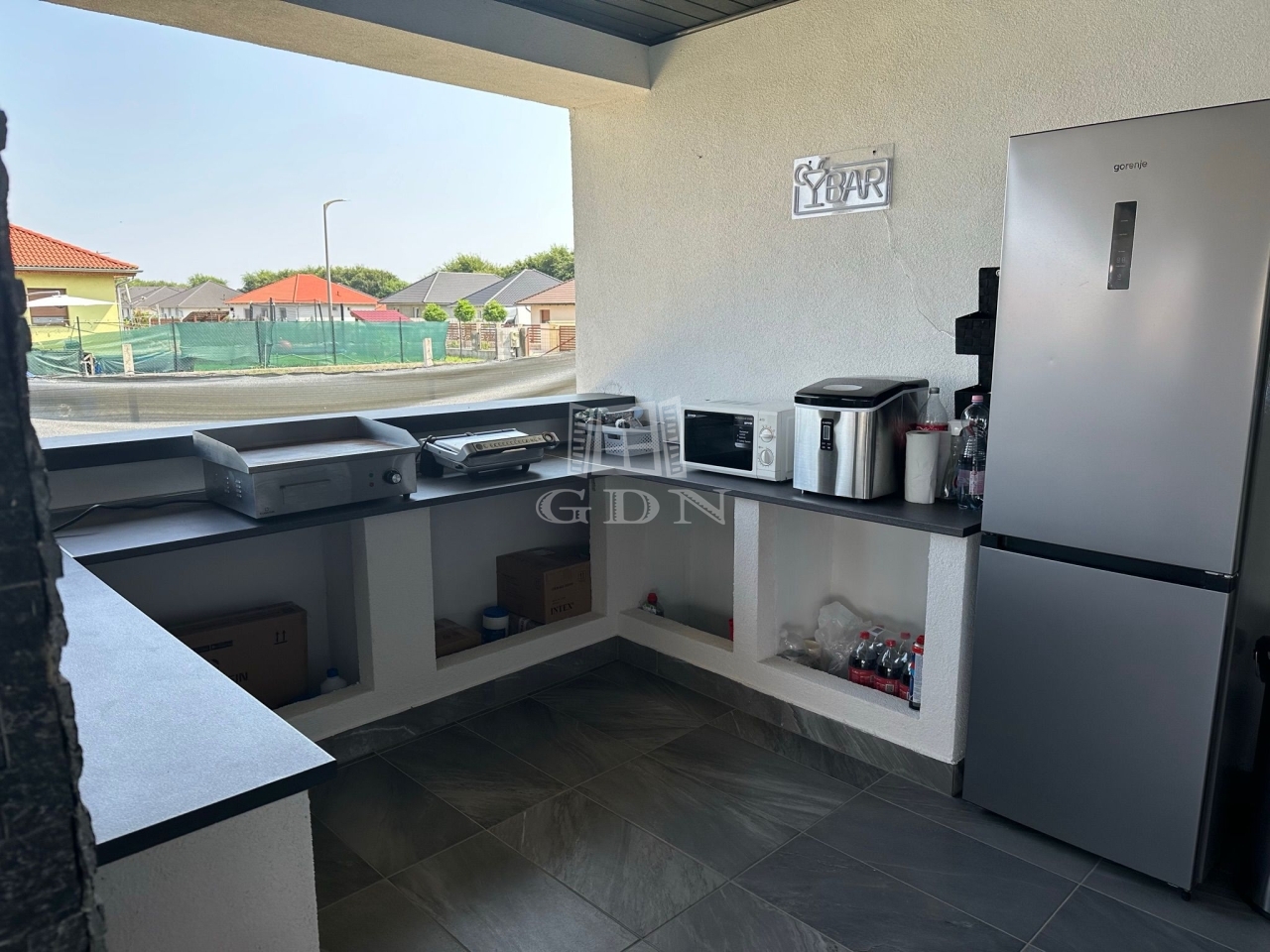-Az egyedi tervezésű magasfényű gépesített konyha, indukciós főzőlap, páraelszívó,beépített mikróval, a konyhabútor ajtók és fiókok csillapítókkal vannak ellátva,
