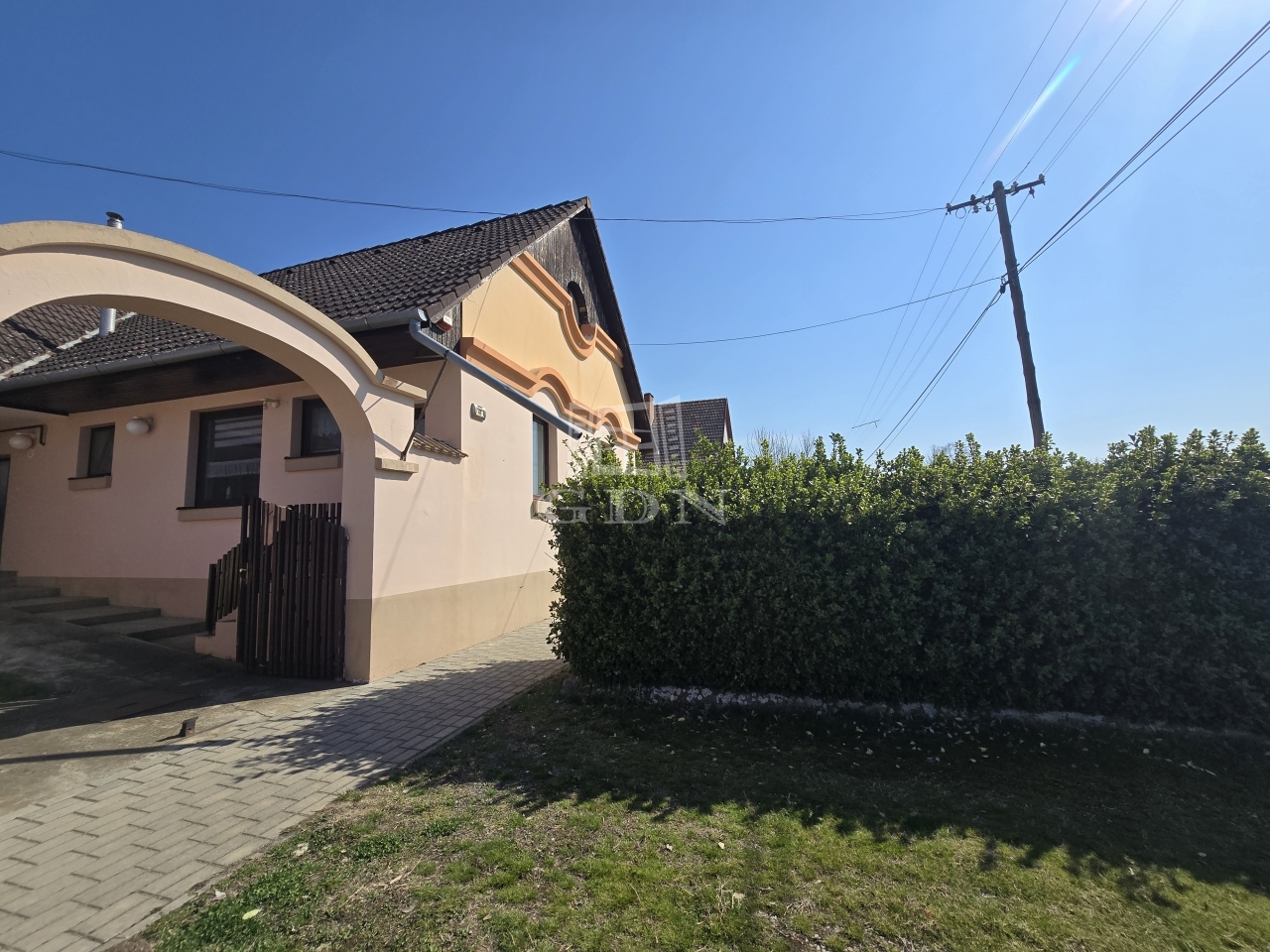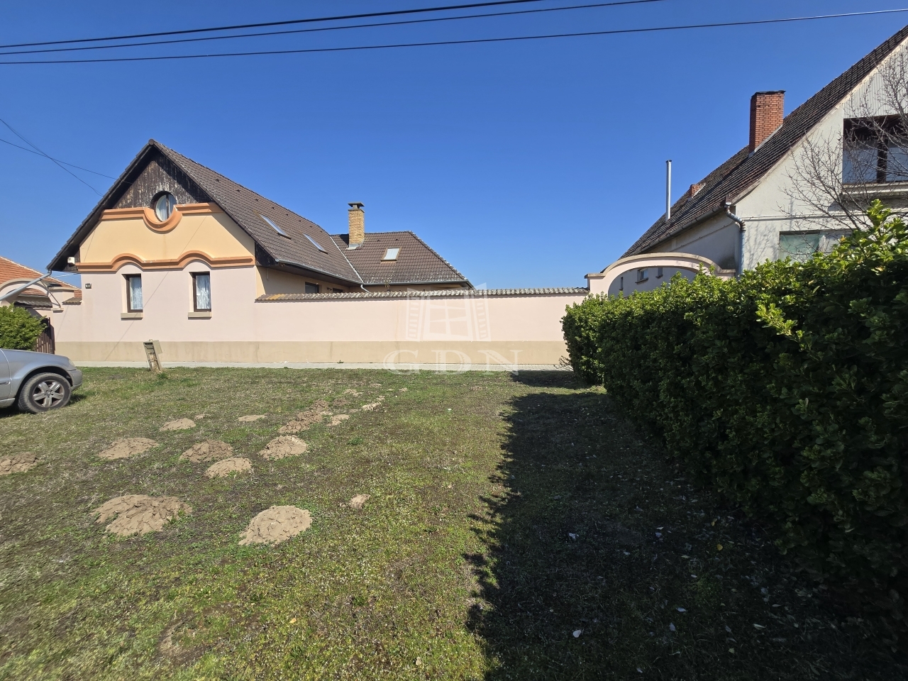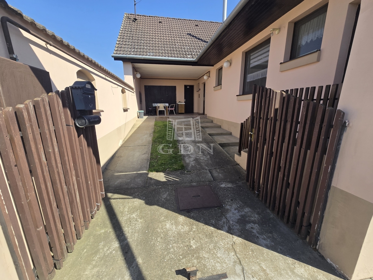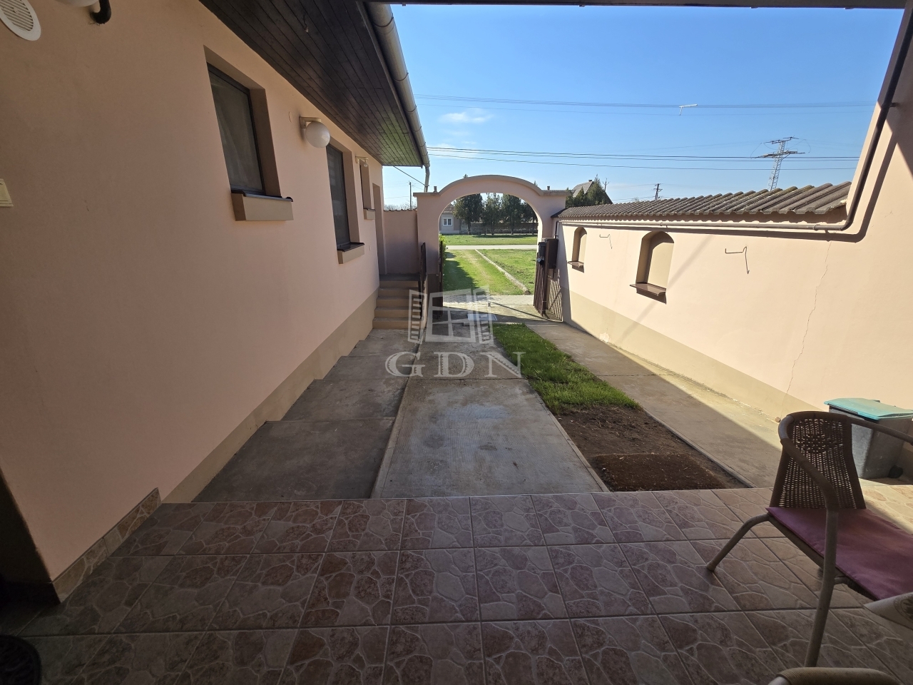 A garázsból közvetlen kijárat nyílik az udvarra, de a nappaliból is könnyedén megközelíthető a kert, ami különösen kényelmes megoldás a mindennapok során. Az ingatlan riasztórendszerrel is felszerelt.