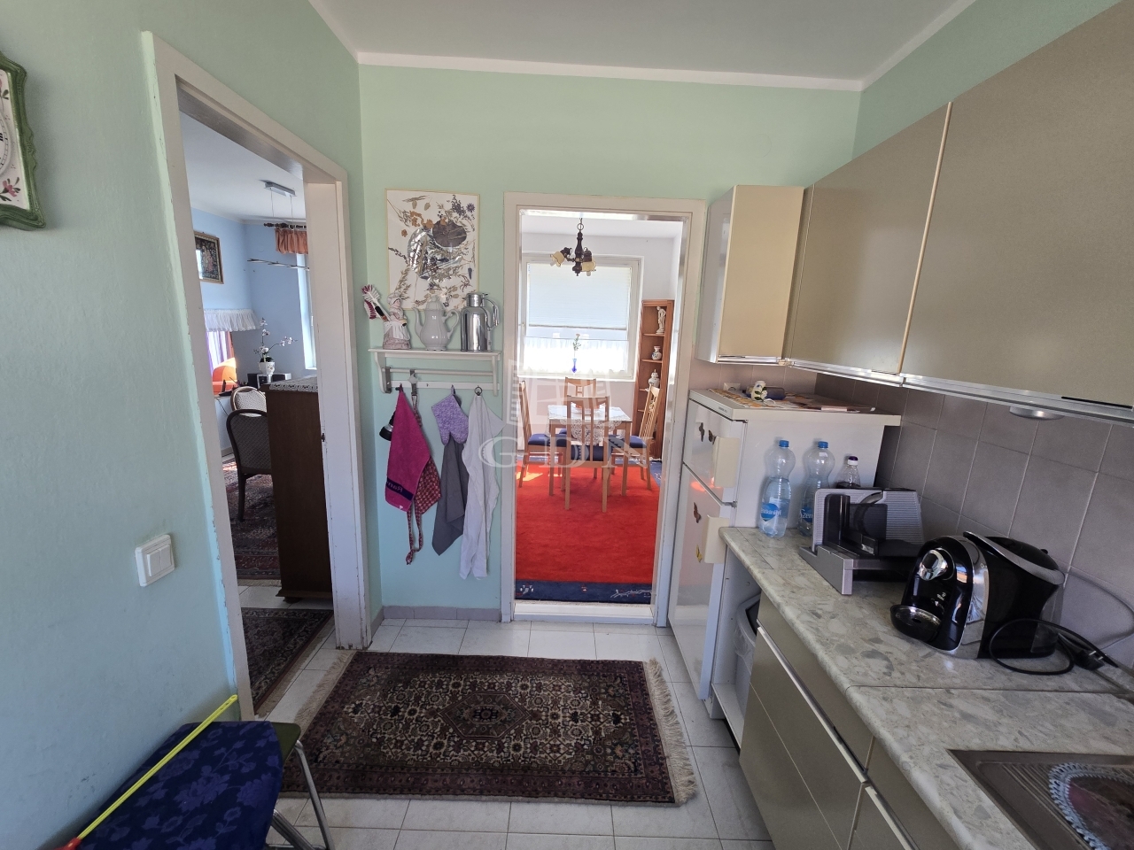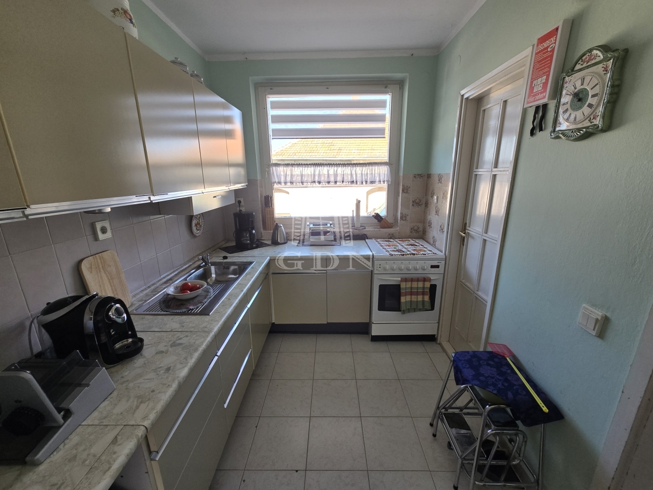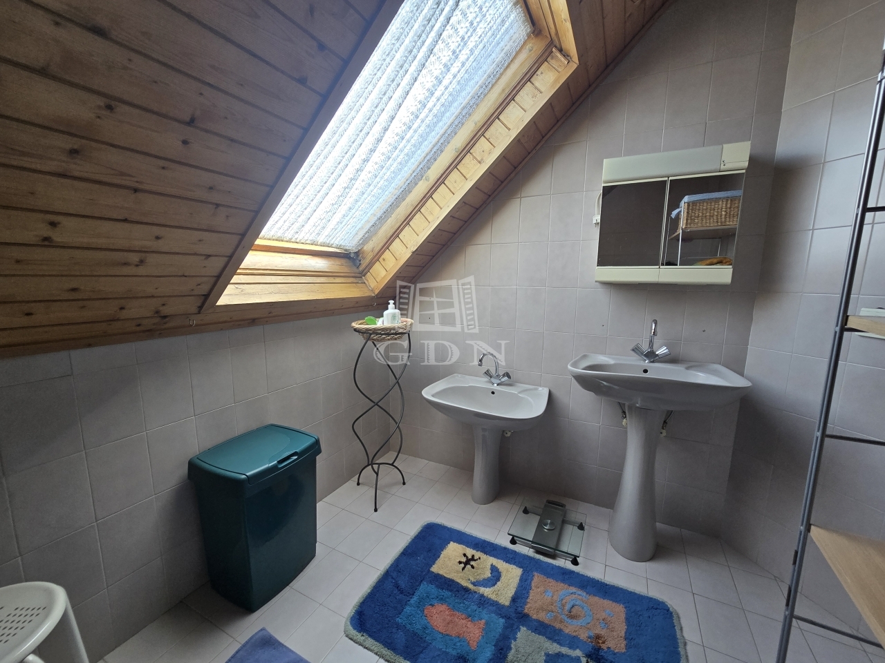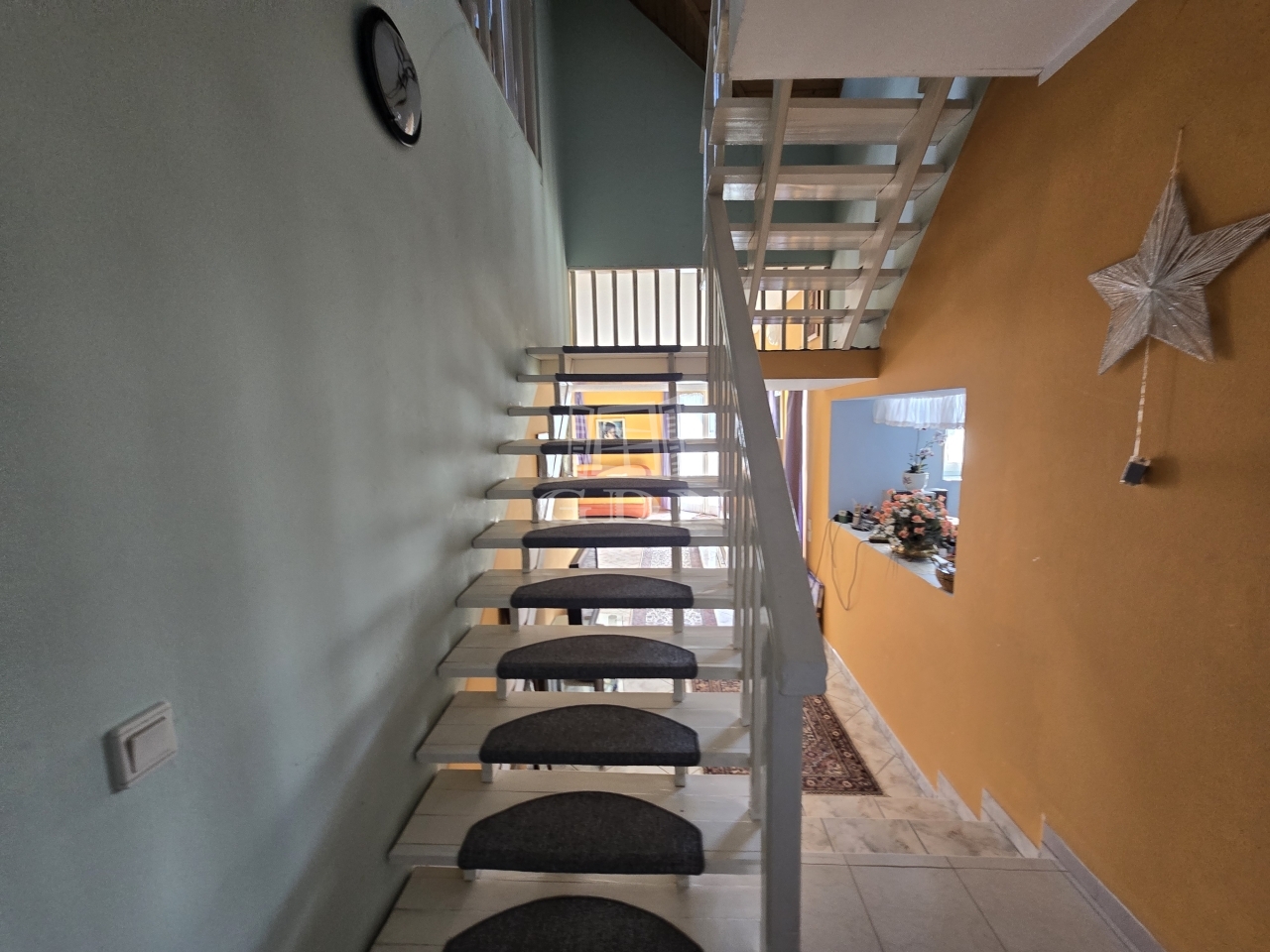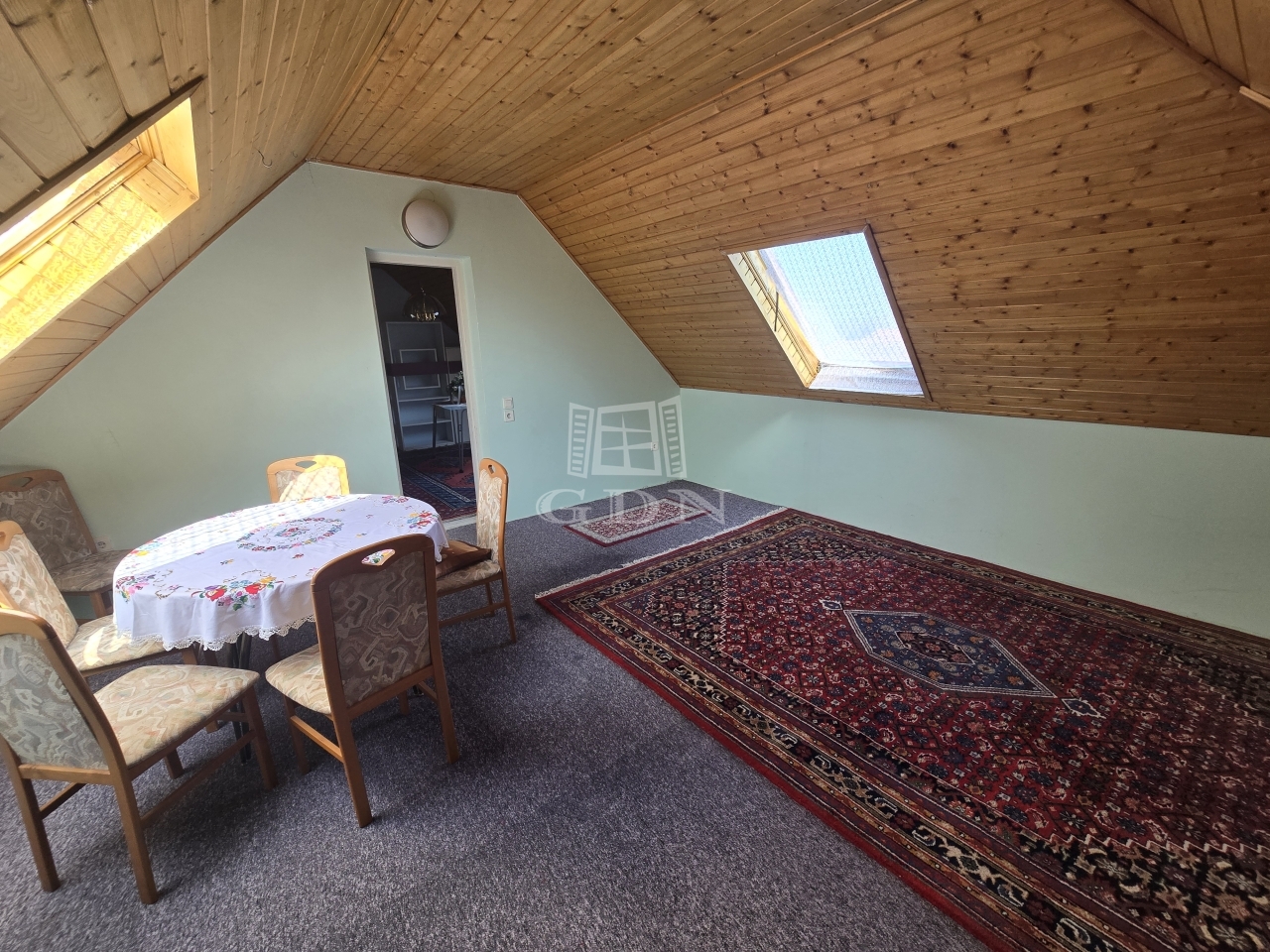 A garázsból közvetlen kijárat nyílik az udvarra, de a nappaliból is könnyedén megközelíthető a kert, ami különösen kényelmes megoldás a mindennapok során. Az ingatlan riasztórendszerrel is felszerelt.