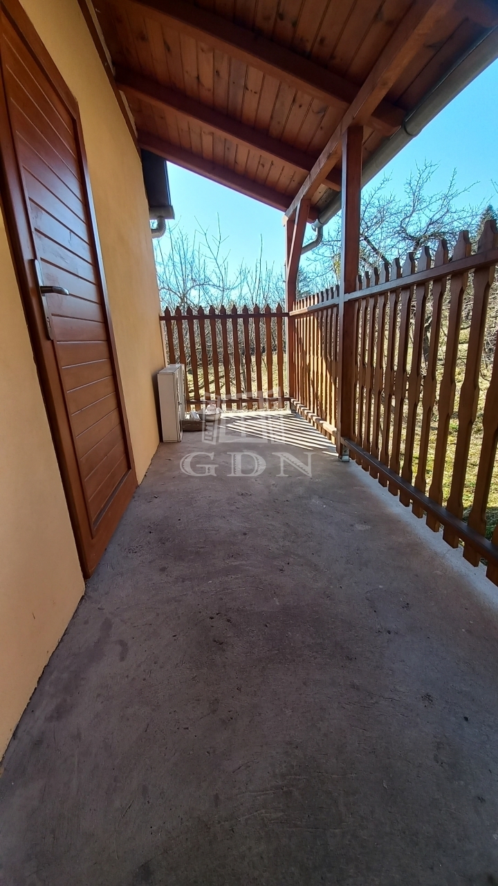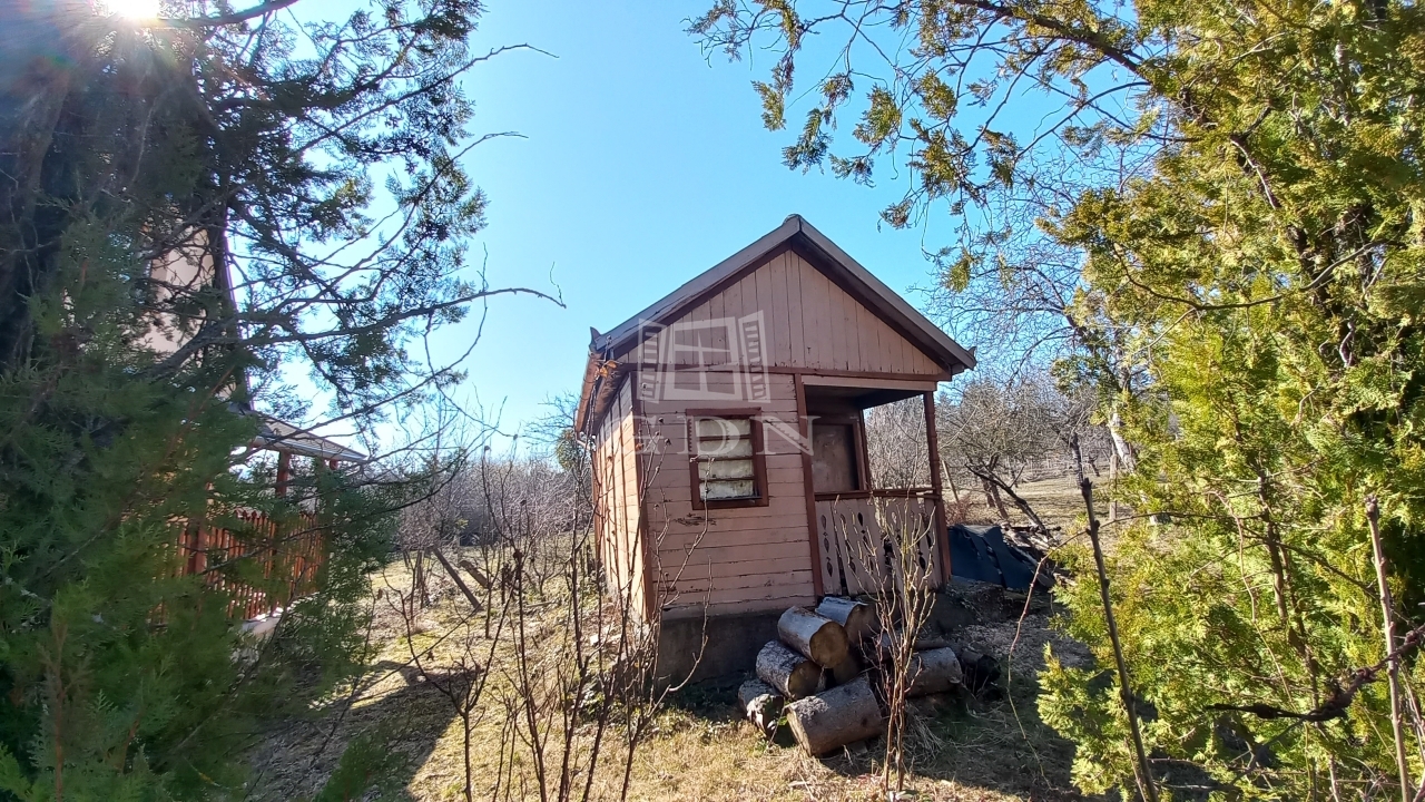 A telek dupla, 2000 négyzetméteres, termő gyümölcsfákkal, egy 63 négyzetméteres lakhatásra is alkalmas épülettel, melyhez egy 14 négyzetméteres terasz és pince is tartozik.