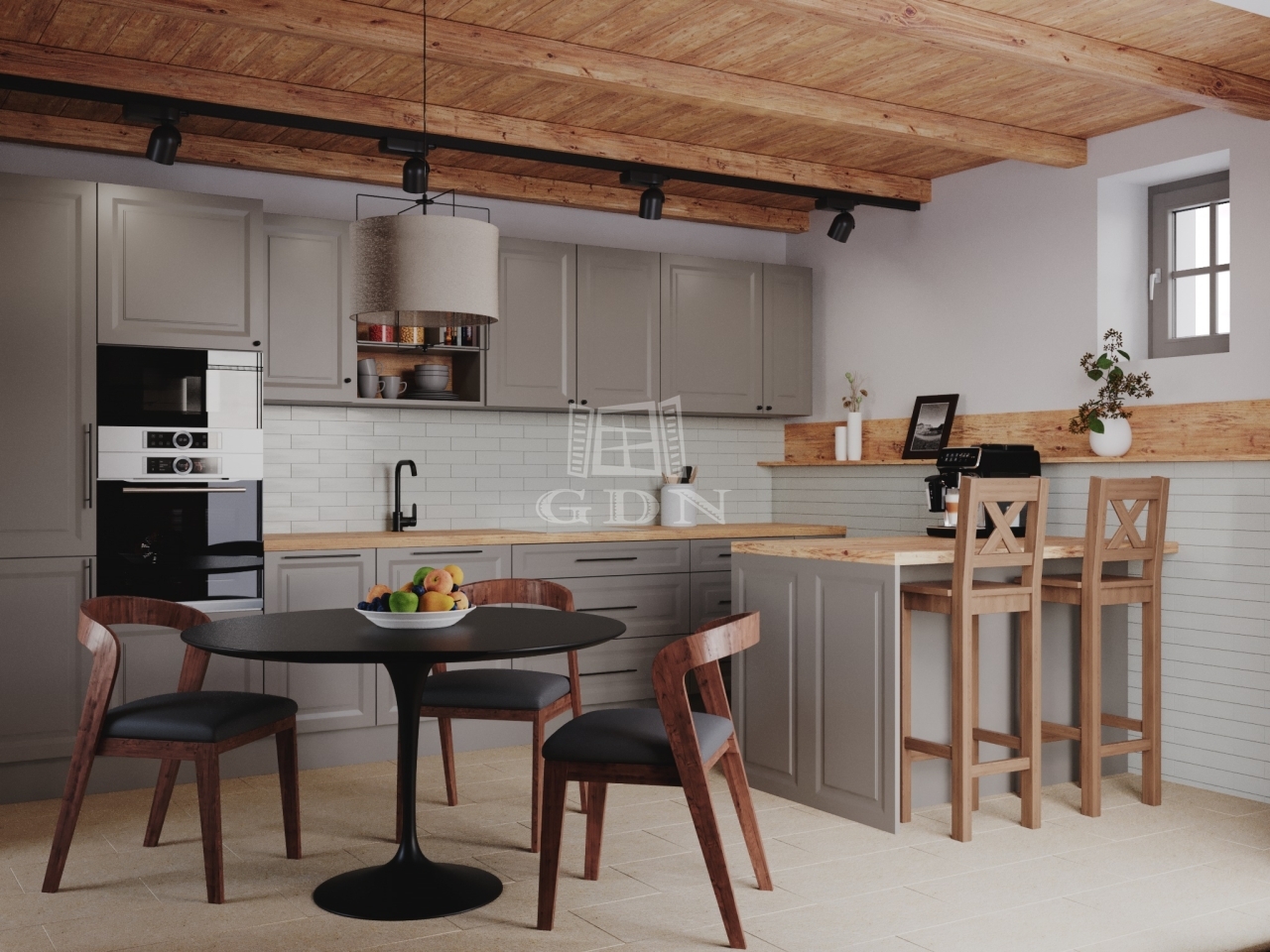 Az kő alapra épült régi vályogház magas lábazati fallal rendelkezik, így a felújításkor a száraz, jó állapotú, 40-50 cm-es falakat és a födémet megtartották. A belső helyiségek aljzatát szigetelték, belső válaszfalakat az új tervek alapján téglából készítették el.