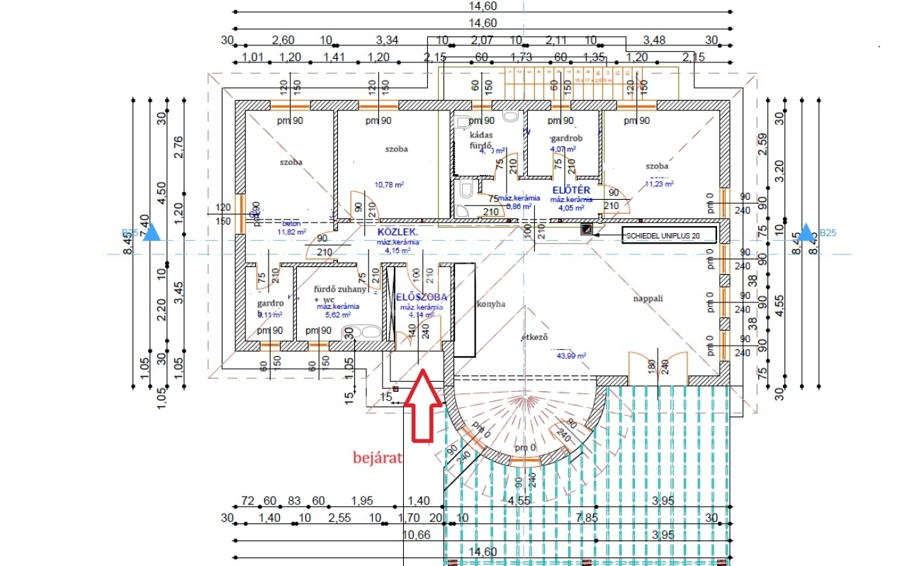 Az épület kiváló minőségű, 30 cm-es Porotherm főfalakból készült, melyet 15 cm-es külső hőszigetelő rendszer borít garantálva az alacsony rezsit, a tetőt antracit színű betoncserép fedi.