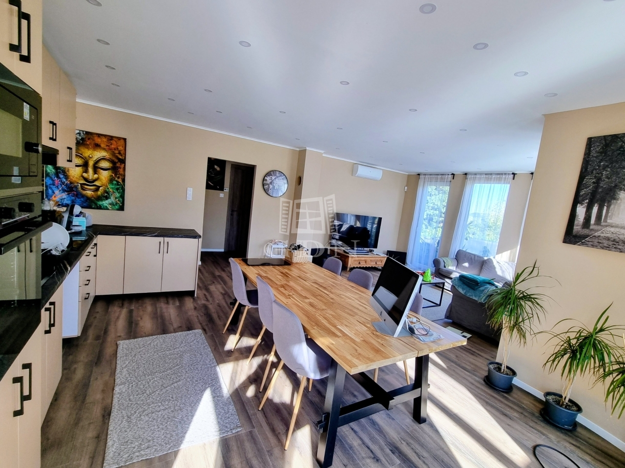 A nyílászárók háromrétegű hőszigetelt ablakok, az Ön nyugalma érdekében az ingatlan fel van szerelve riasztórendszerrel is.