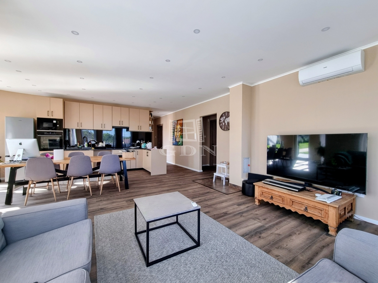 Az ingatlan egyedülállóan tágas, 104 négyzetméteres alapterületű, melyben egy óriási 44 nm-es amerikai konyhás nappali és négy különálló szoba kapott helyet. A kényelmet két elegáns fürdőszoba szolgálja, egy kádas és egy zuhanyzós.
