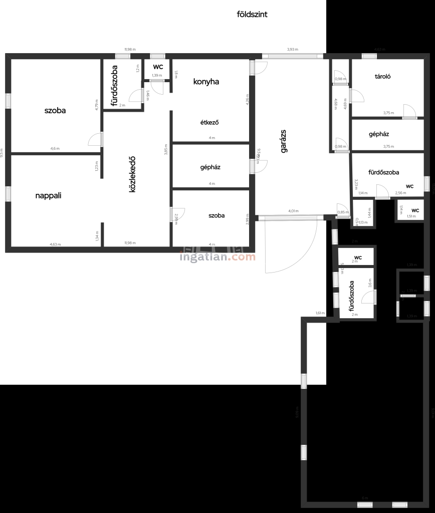 Az alsó szinten, 2 szoba, tágas nappali, konyha, fürdőszoba, valamint külön WC, előszoba és kamra található.