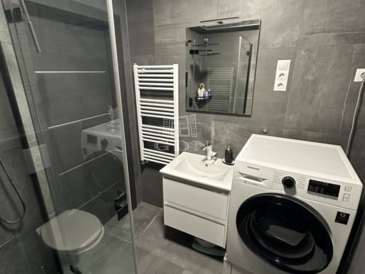 A belső tér modern, letisztult és praktikus. A falba süllyesztett, mágneszáras beltéri ajtók elegáns megjelenést és csendes működést biztosítanak. A lakásban klíma is található, így nyáron is kellemes hőmérséklet vár.