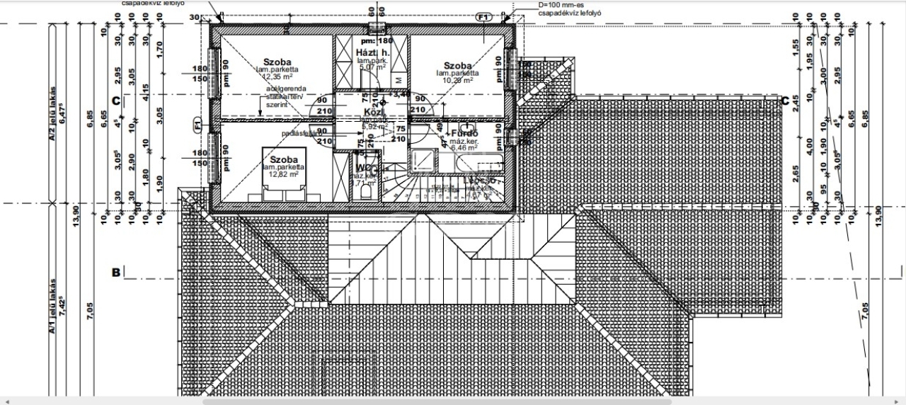 Ugyanitt az ikerház másik fele is eladó, amely 1 szintes, 4 szobás épület, hasonló műszaki tartalommal, amelynek az irányára: 145 800 000 Ft