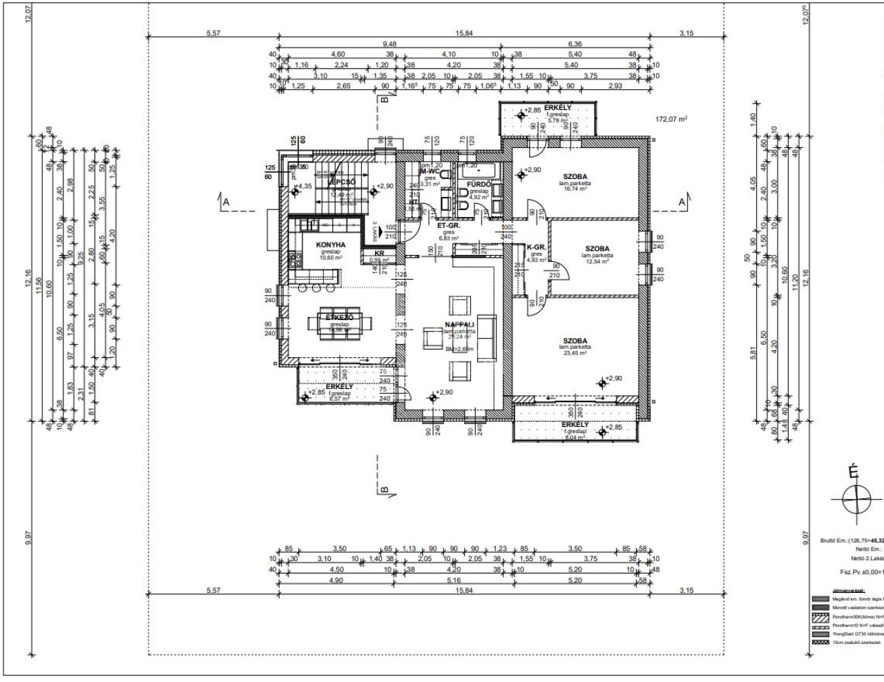 A lakás bruttó alapterülete: 170,85 m2