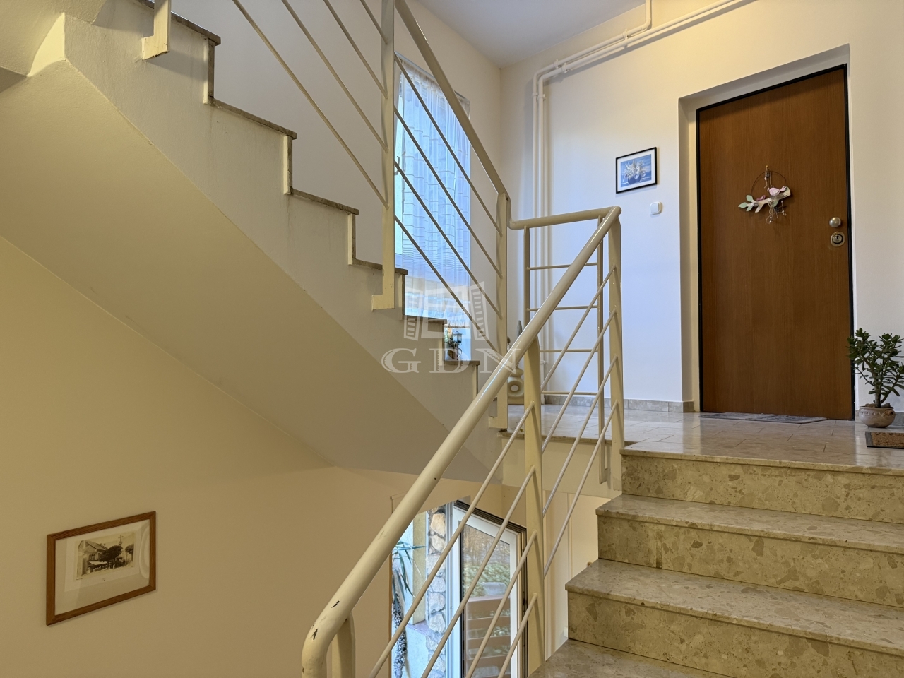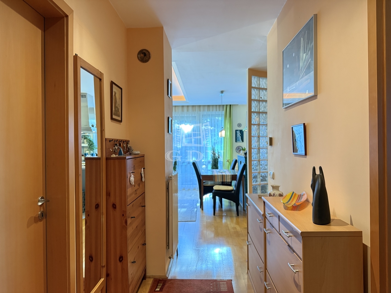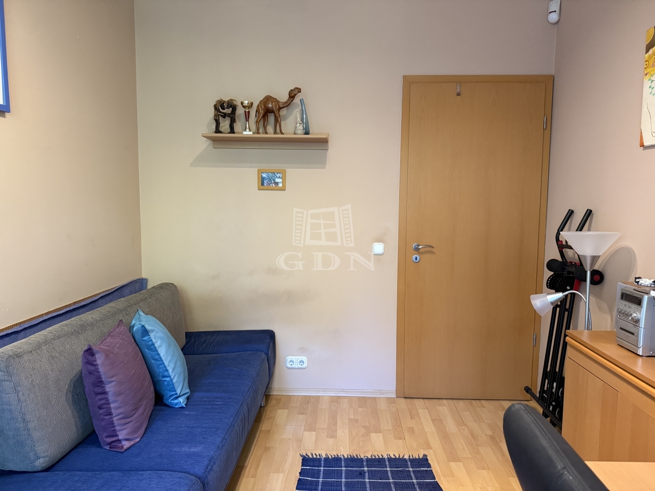 Az ingatlan 2004-ben épült, mindössze öt lakásos társasházban található, első emeleti, 81 m²-es, kifogástalan állapotú, amerikai konyhás nappalival és három hálószobával. A jól átgondolt elrendezés mellett két erkély (az egyik amerikai konyhás nappaliból nyílik, a másik pedig az egyik halószobából), ablakos fürdőszoba, külön vendég-WC, gardrób, két teremgarázs-hely és 7 m²-es tároló is tartozik hozzá.