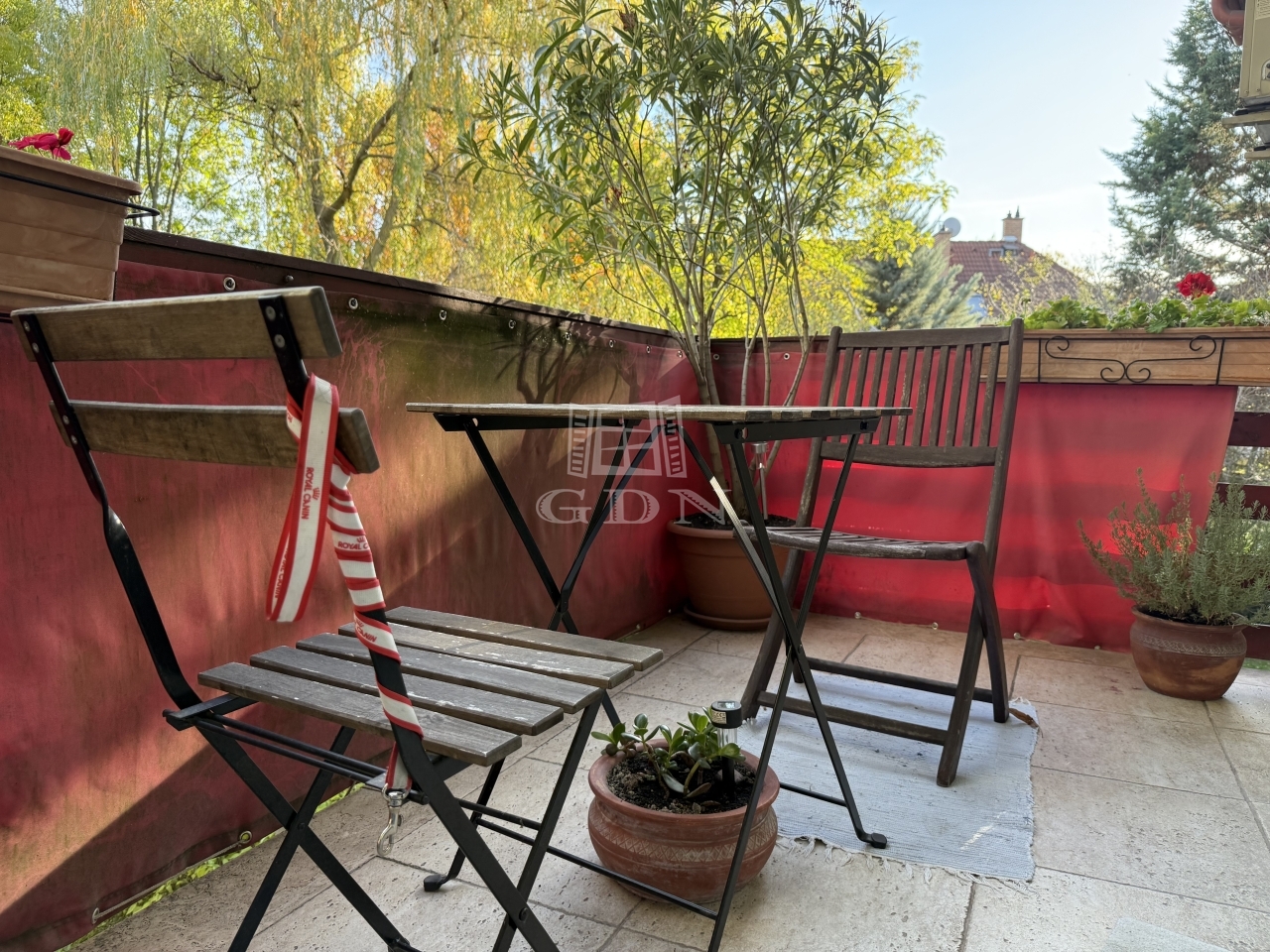 A társasház parkosított kertje igazi oázis a mindennapokban: gyerekeknek biztonságos játéktér, felnőtteknek pihentető környezet.