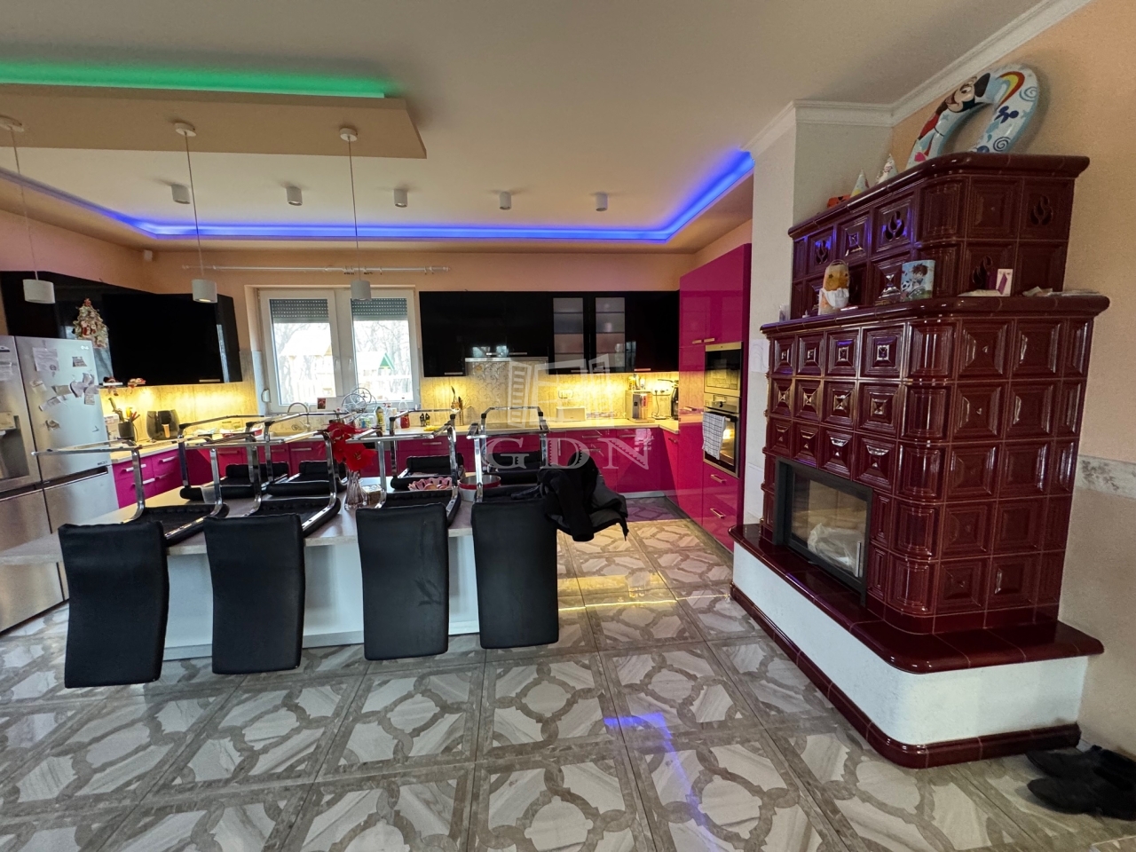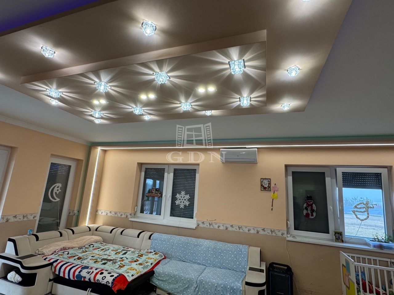 A házban gépesített konyha, 5 darab hűtő-fűtő légkondicionáló, gázkazán padlófűtéssel, cserépkályha, riasztórendszer, kiépített kamerarendszer található.