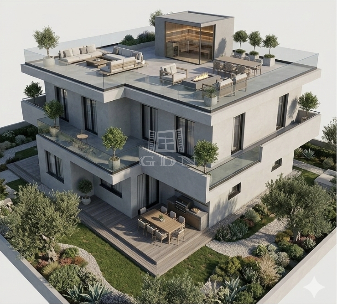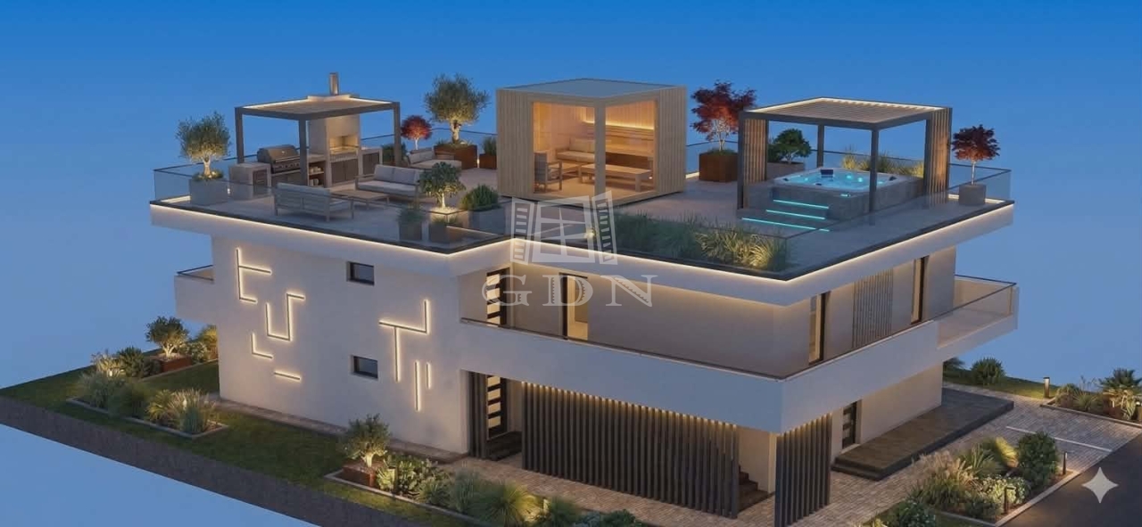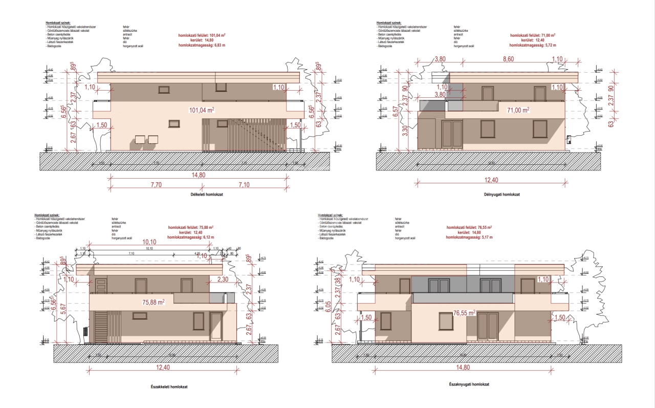 Alapterülete: nettó 115 nm + teraszok 43 nm + saját kertrész 436 nm.