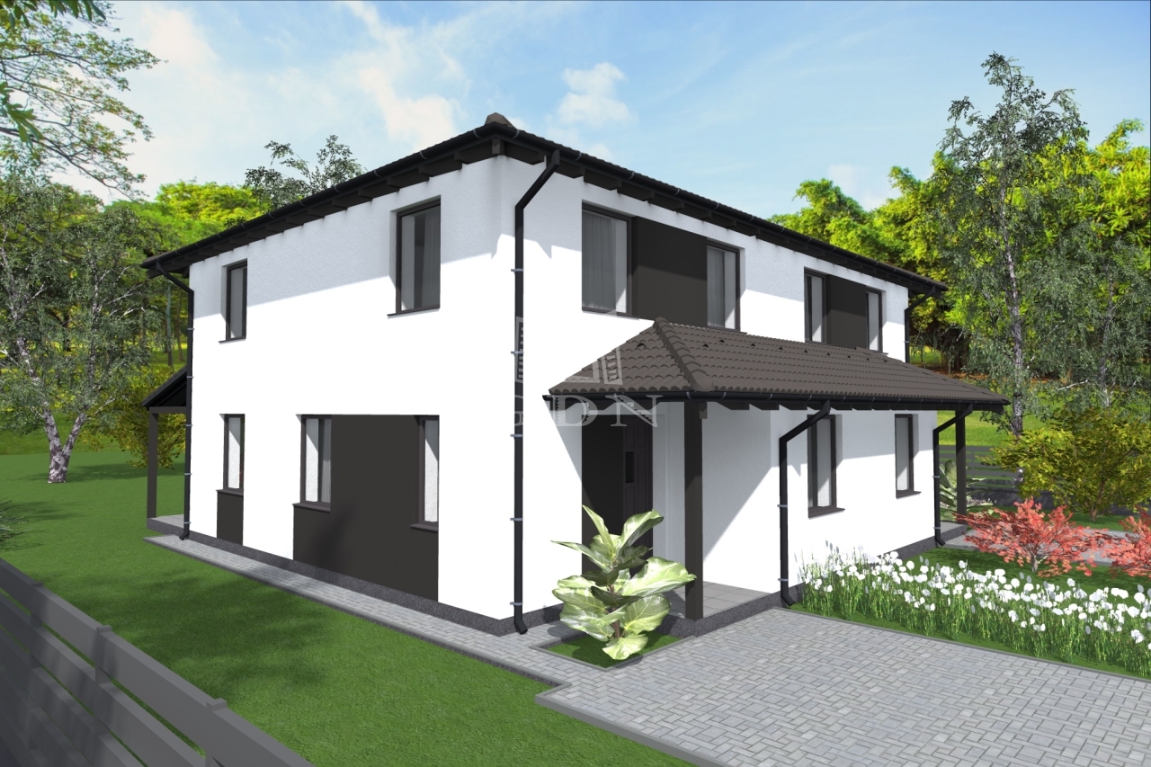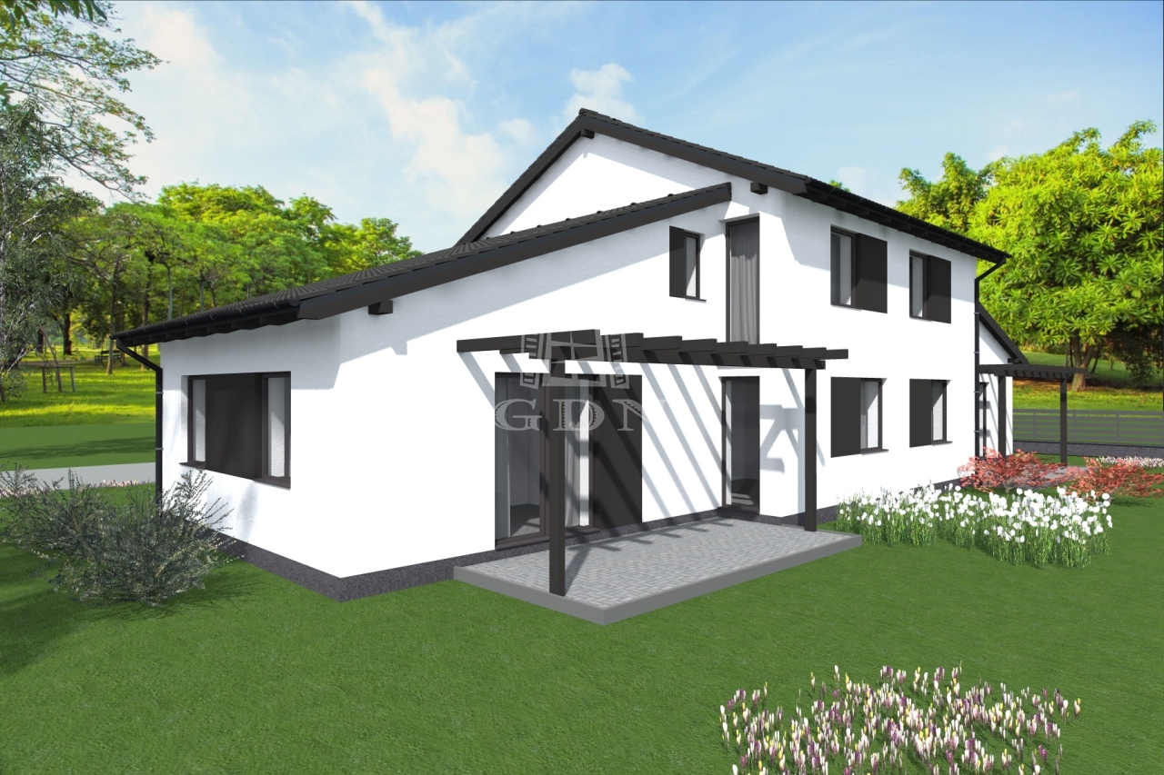 The cold and warm tiling, the windows (size, shape), the front door are optional, the colouring of the house and the fence can be completely customized. The internal partition walls can be moved during the construction.