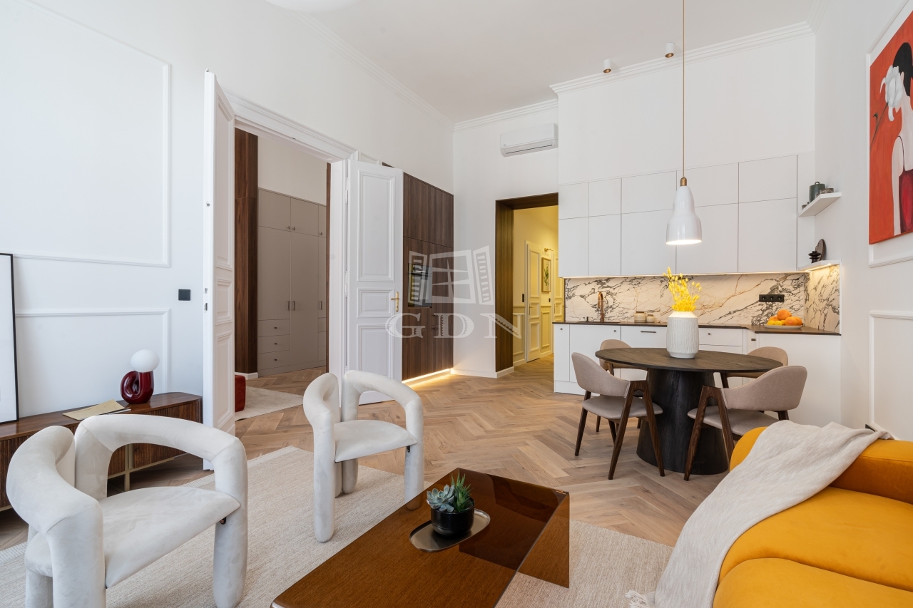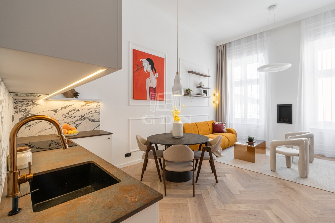 Lépjen be ebbe a frissen felújított, lakberendező által megálmodott lakásba, amely a történelmi Bródy Sándor utcában, egy elegánsan felújított, üvegliftes házban várja új tulajdonosát. A környék hangulatos kávézóival és exkluzív éttermeivel Budapest egyik legkedveltebb városrészének közepén kínál kivételes életérzést.