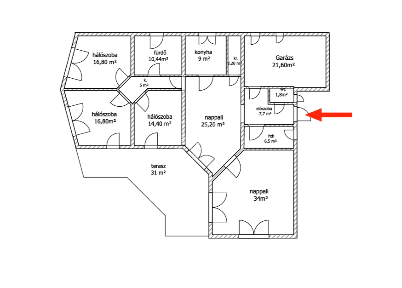 - földszint (150 nm): előszoba, fürdőszoba, wc, amerikai konyhás nappali,spájz, közlekedő, 5 hálószoba.