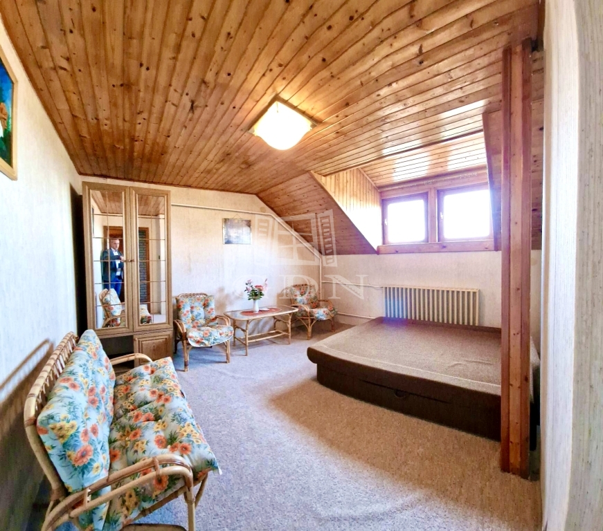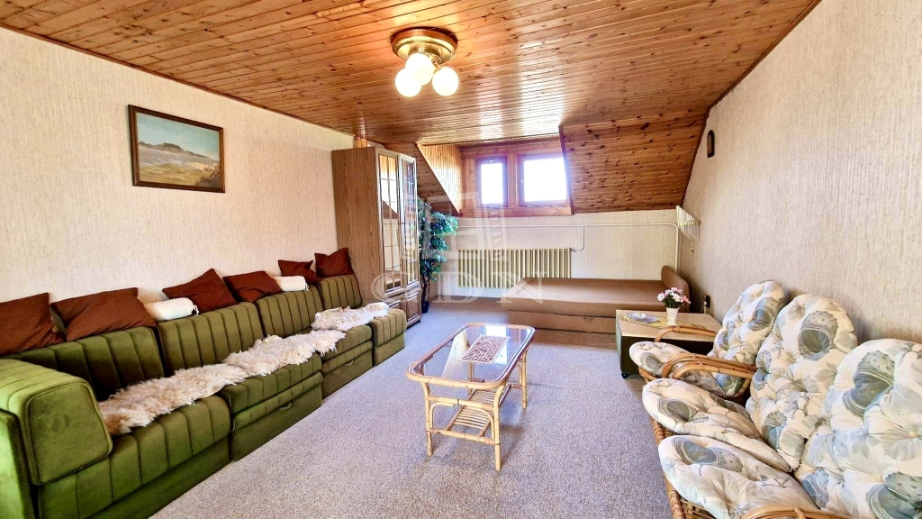 - A tetőtérben 4 hálószoba, 2 zuhanyzós fürdőszoba, 1 konyha és közlekedő folyosó található.