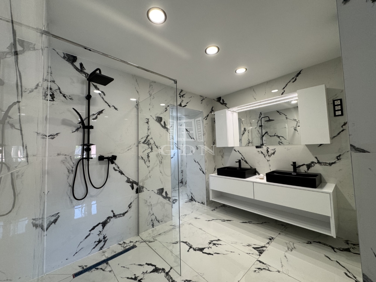 Egy gépesített, közel 50 m2-es amerikai konyhás nappali, egy szülői háló gardróbbal és fürdőszobával, kettő hálószoba, fürdőszoba, kazánház és egy nagyobb, mint kétállásos garázs lett kialakítva. A házhoz kapcsolódik egy 16m2-es fedett terasz is.