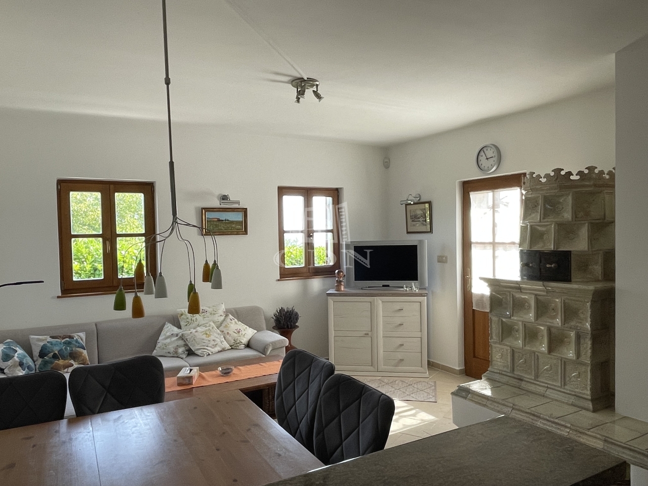 Fűtés: a föld alatti 5 m3-es propángáz tartály biztosítja a padlófűtést minden szinten, a nappaliban cserépkályha sütőfunkcióval, split klímák, a fürdőkben plusz törölközőszárító radiátorok.