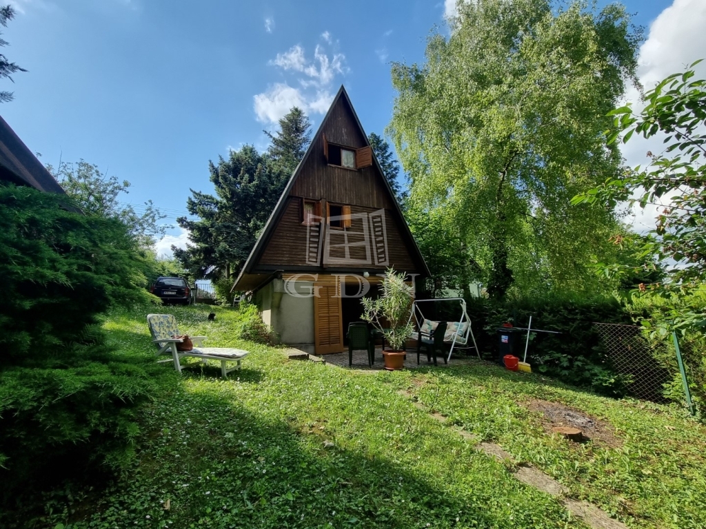 Vh-004108. Balatonvilágos kedvelt részén 608 nm-es gondozott, két utcafrontos építési telken, 70nm-es, Alpesi típusú 3 szintes , 2 lakóegységes hétvégi ház/ nyaraló eladó.