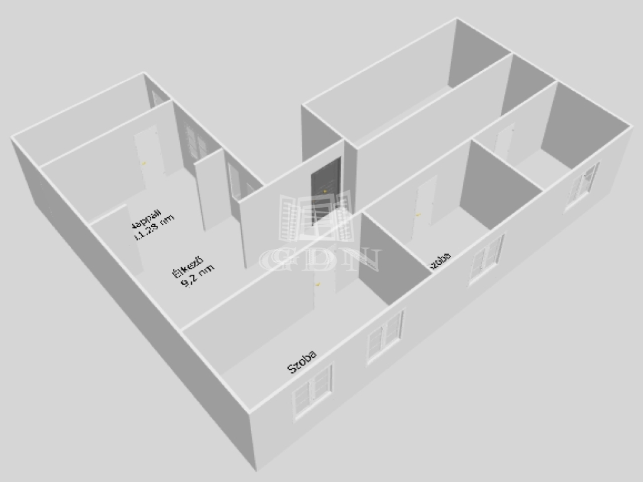 A ház jelenleg egy bejárattal rendelkezik, de az elrendezése lehetővé teszi, hogy akár két különálló lakrész is kialakítható legyen.