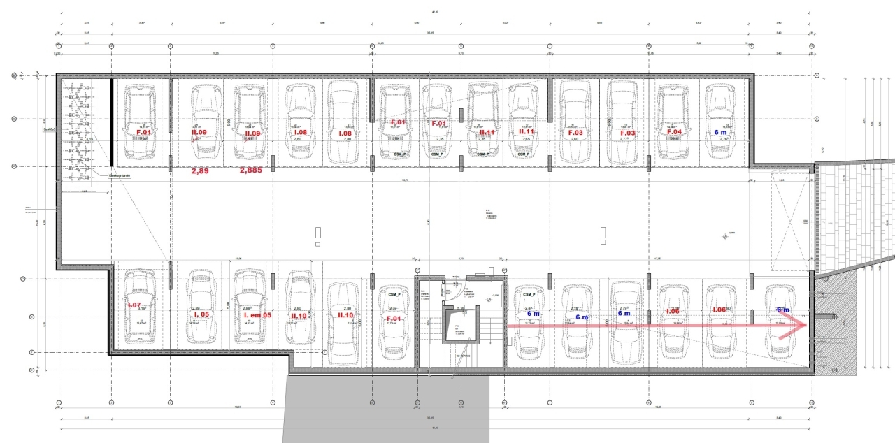 Az épület pincei szintjén található teremgarázsban további parkolóhelyek és tárolók is megvásárolhatók, ezek mind külön albetétként szerepelnek.