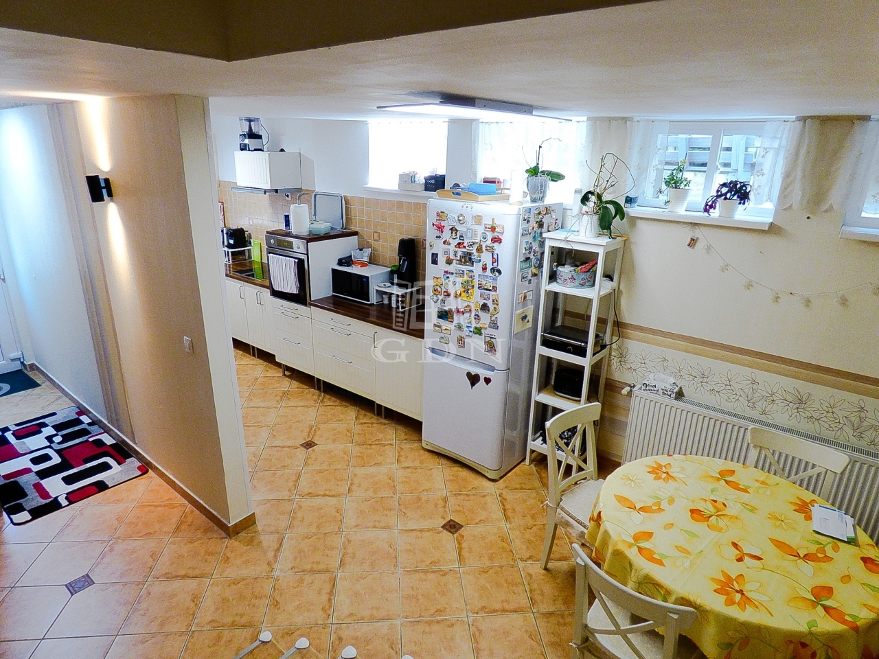 A nagyobbik lakrészen (110 nm) amerikai konyhás, étkezős nappali, 3 hálószoba, fürdőszoba, wc lett kialakítva két szinten.